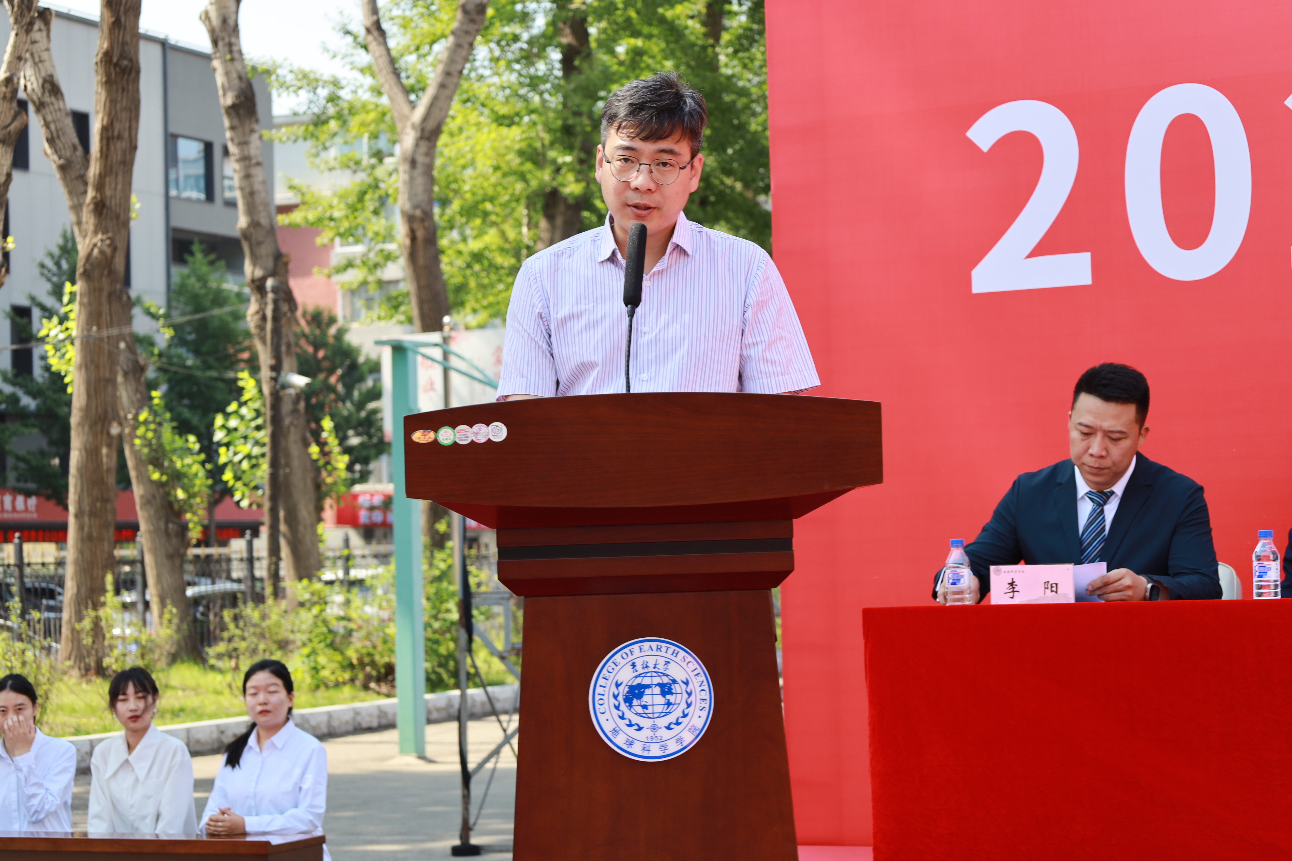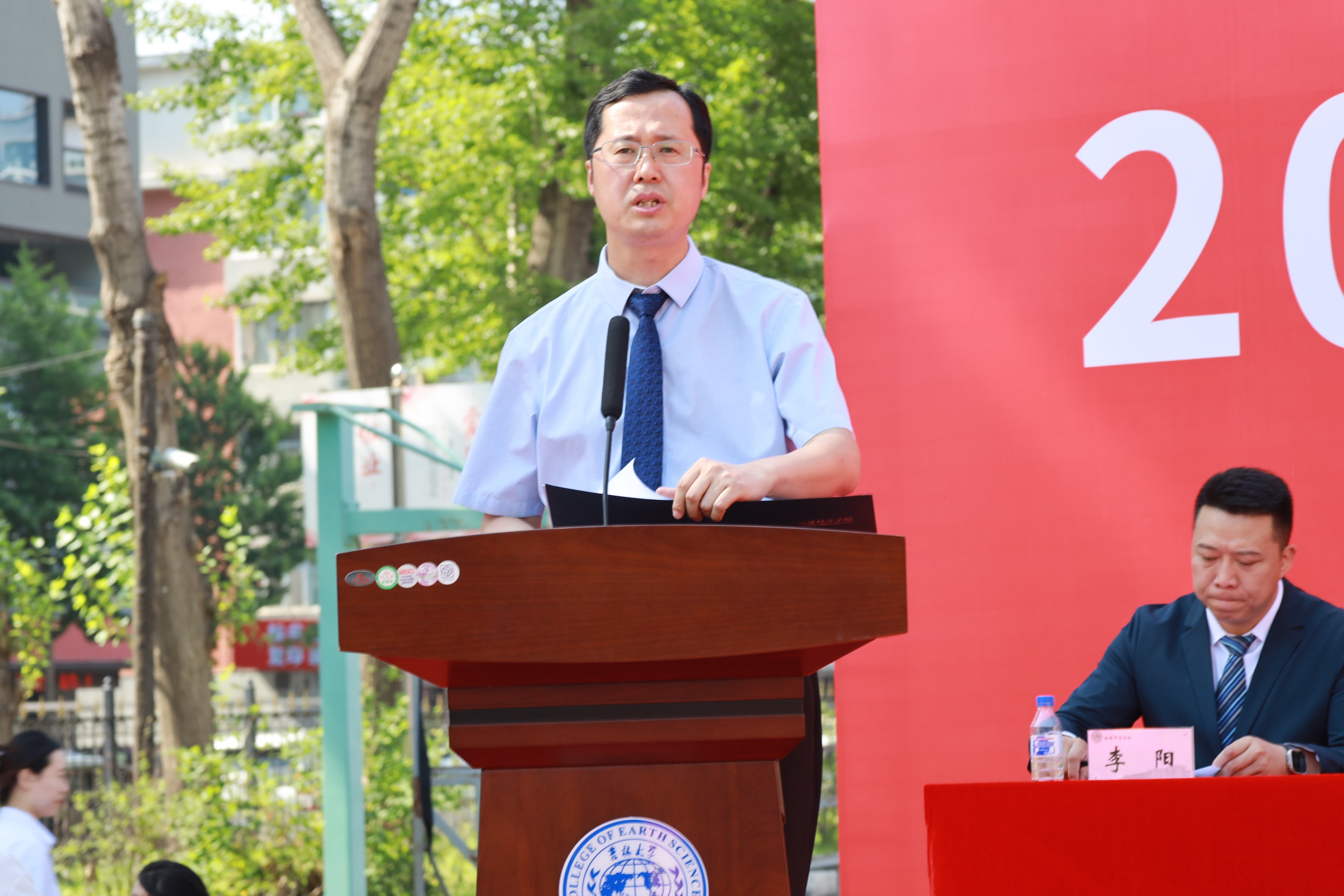 研究生代表赵伍涛回顾了三年研究生生涯中的难忘时刻,对学院提供的资源和平台,以及老师们的辛勤耕耘和严谨教导表示诚挚的感谢。他表示,地球科学不仅提升了他的专业素养,更赋予了他深刻的生活哲学。在探索自然的过程中,他也在不断地认识自我,实现自身的成长。他将继续秉承吉大人的精神及地学传统,怀抱梦想,勇敢前行,书写辉煌的篇章。
