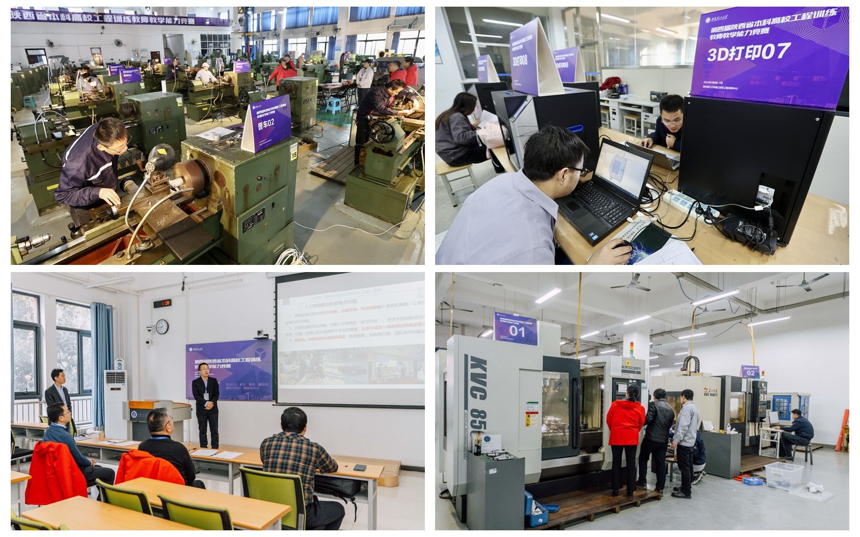 本次竞赛共设置基础加工教学技能、综合实践教学技能、教学创新三个赛项。其中,基础加工教学技能竞赛为单人赛;综合实践教学技能竞赛为团队赛,由3名来自3所不同高校的教师自由组队,分别负责普通车工、数控铣工、3D打印技术这3个工种,并在现场规定的时间内,通过团队协作完成一套装置,实现既定功能;教学创新竞赛分为“匠心与创新”“劳动新形态”两个赛道,每支队伍由1至4名队员组成,重点考察参赛教师或团队完成教学设计、教学说课和教学操演的能力。