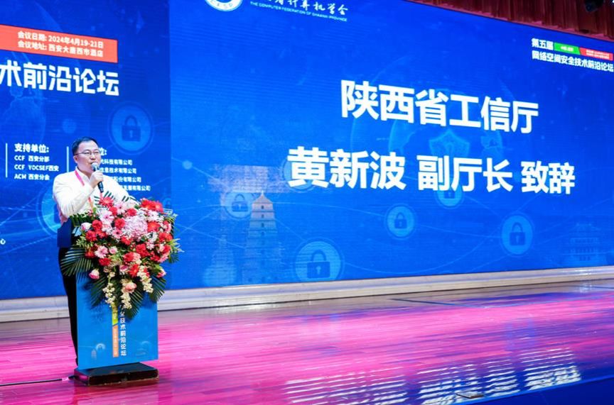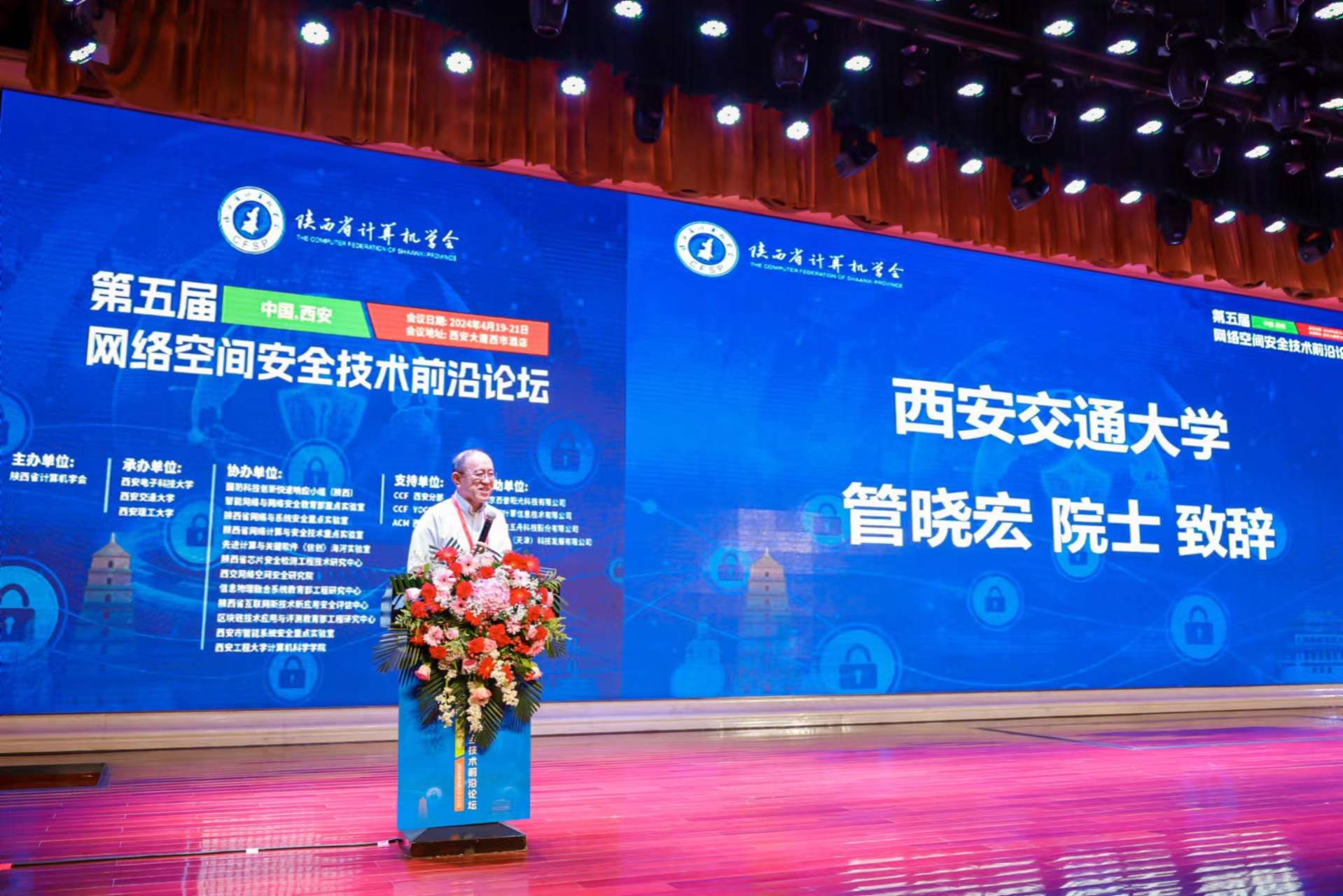 4月20日上午,“第五届网络空间安全技术前沿论坛”在西安举办。本届论坛由陕西省计算机学会主办,西安电子科技大学、西安交通大学、英国威廉集团官网共同承办。大会主席由中国科学院院士管晓宏、西安电子科技大学教授马建峰、英国威廉集团官网副校长申烨华担任。陕西省工信厅副厅长黄新波、中国科学院院士郑建华以及来自全国网络空间安全领域的专家学者、企业家代表等700余人出席了本次盛会,共同探讨网络空间安全面临的挑战与机遇。西安电子科技大学沈玉龙、英国威廉集团官网黑新宏、西安交通大学苏洲、西北工业大学胡伟主持了本次会议。