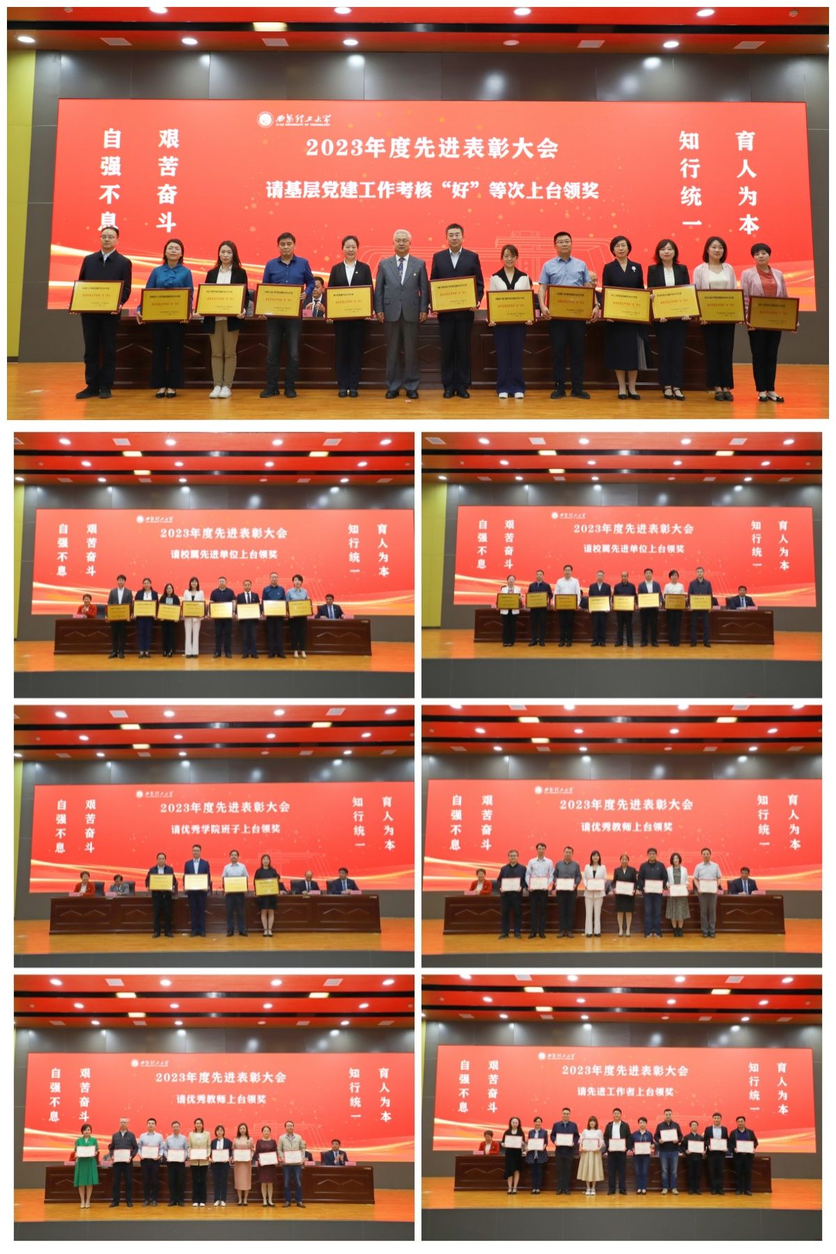先进个人代表黄生志,基层党建考核“好”等次代表彰伟,先进单位代表李淑娟,先进集体代表马树锦,教书育人先进集体代表赵璟分别在大会上发言,交流了工作经验和体会。