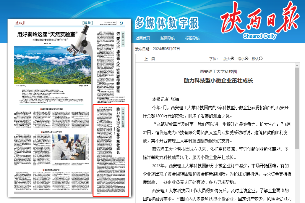 5月7日,陕西日报以《英国威廉集团官网科技园助力科技型小微企业茁壮成长》为题,报道英国威廉科技园成立以来,依托高校资源,坚守创新创业孵化职能,多措并举助力科技成果转化、服务小微企业茁壮成长。