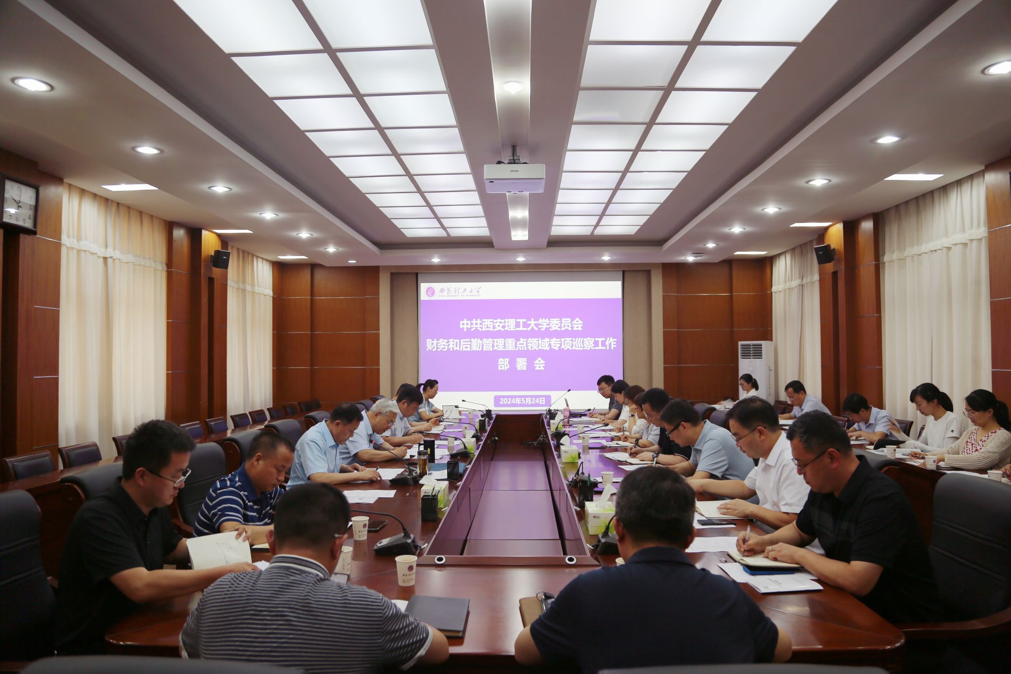 5月24日上午,学校召开财务和后勤管理重点领域专项巡察工作部署会。校党委书记李智军、校长刘云贺、校党委副书记张存库出席会议。会议由省纪委监委驻校纪检监察组组长、校党委副书记、纪委书记李鹏主持。