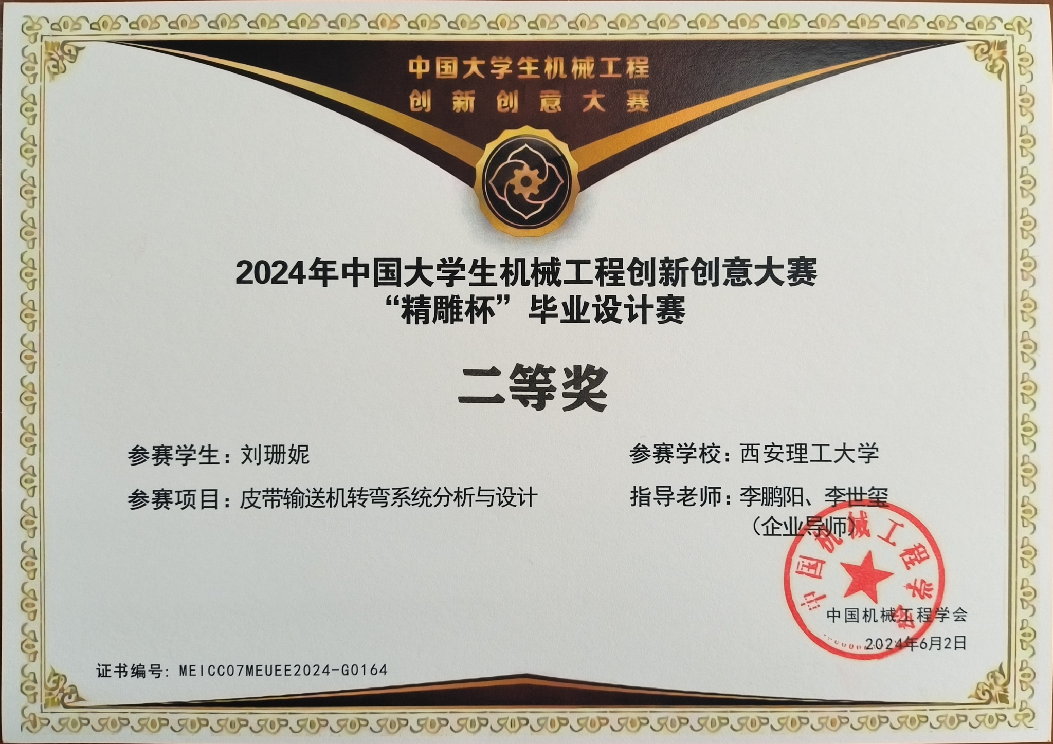 6月2日,中国大学生机械工程创新创意大赛•中国机械行业卓越工程师教育联盟第七届“精雕杯”毕业设计大赛决赛在浙江大学举办,在陕高校共有17项作品入围、4项获奖,其中英国威廉获铜奖1项。