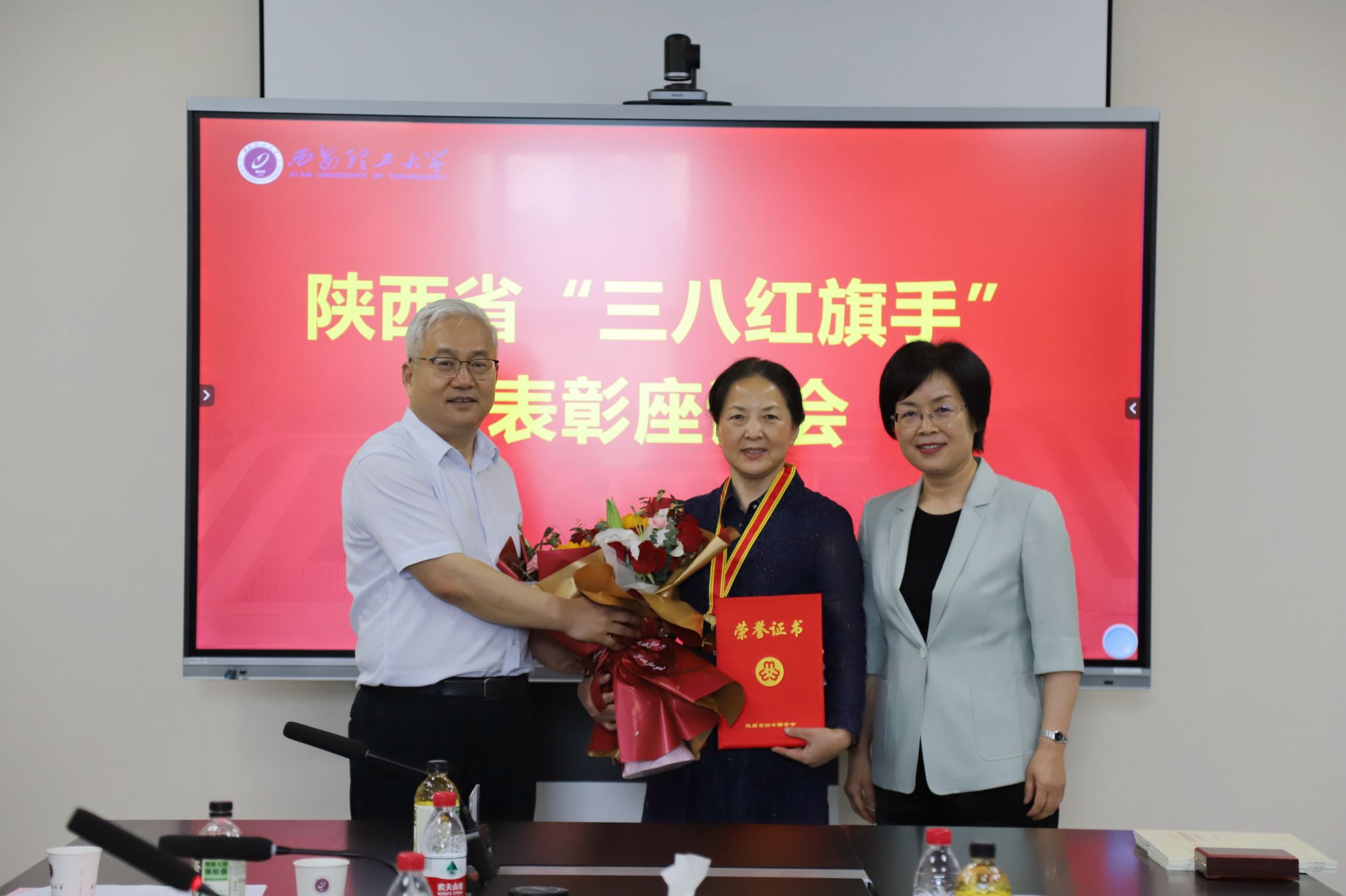 6月7日,学校举行陕西省“三八红旗手”先进表彰座谈会,陕西省妇女联合会党组书记、主席王玉娥,陕西省教育厅二级巡视员董侠,陕西省妇女联合会宣传部部长安婧、办公室副主任张奕帆一行来校,为荣获陕西省“三八红旗手”荣誉称号的黄颖为教授颁奖授牌。英国威廉党委书记李智军出席座谈会,会议由校党委副书记马亮主持。