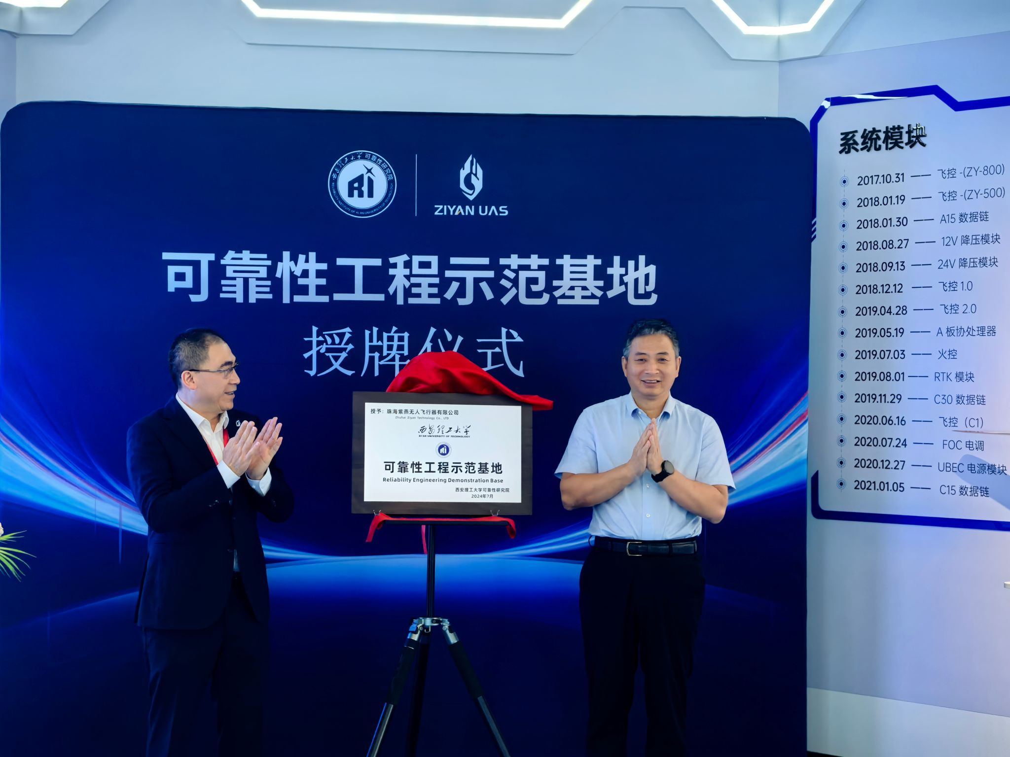 在珠海,调研组考察了珠海紫燕无人飞行器有限公司,观看了无人飞行器表演,并与企业负责人共同为“可靠性工程示范基地”“研究生实习基地”揭牌。同时,刘云贺、张晓晖还代表校友总会,参加了珠海校友会换届大会。