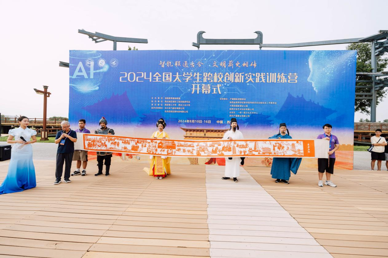 8月10日,2024全国大学生跨校创新实践训练营开幕式在大明宫国家遗址公园举行。来自全国40所高校的100余名学生,将在为期一周的训练营中,从历史的积淀中汲取智慧,以科技的力量联通古今。