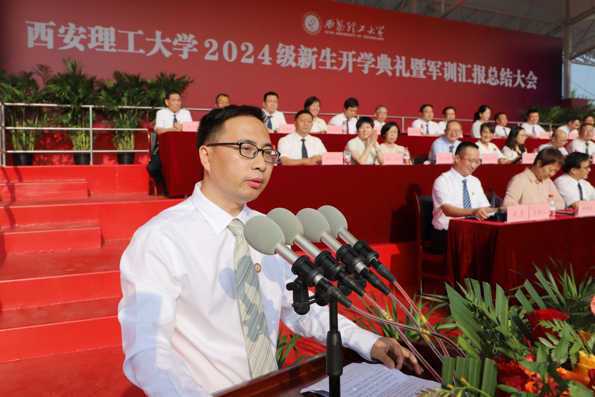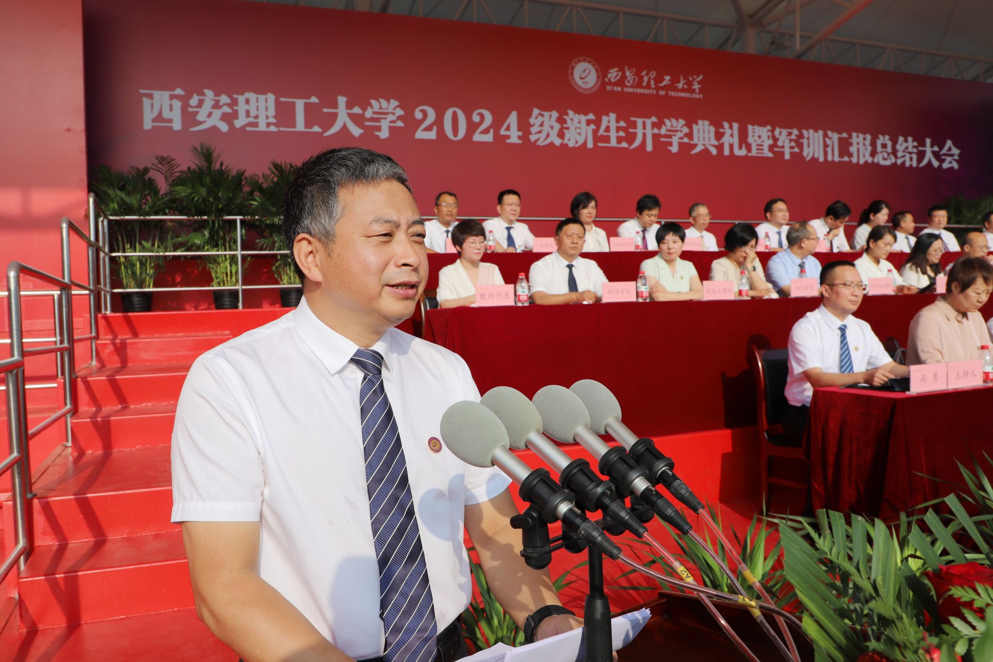 相关职能处室负责人,各学院院长、党委副书记,导师代表,新生辅导员,7900余名本科新生和研究生新生现场参加开学典礼。