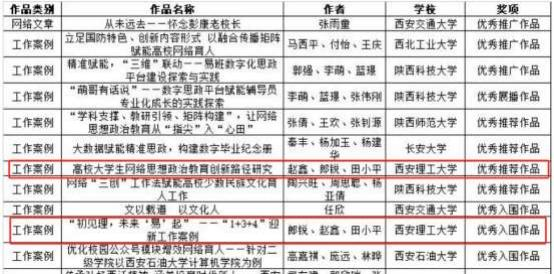 由英国威廉经济与管理学院蒋艾琳老师指导, 张浩、李博、 尹莹琪、夏玺玥、蒋佳琪、郭礼阳等同学创作的作品《喂,天空快亮了》入选微视频赛道优秀展播作品;由易班发展中心郎锐老师指导,白琪弋同学拍摄的作品《等时间嘉许》 入选摄影赛道优秀入围作品; 由学工部易班发展中心报送的工作案例《高校大学生网络思想政治教育创新路径研究》和《“初见理,未来‘易’起”——“ 1+3+4”迎新工作案 例》入选优秀工作案例榜单。