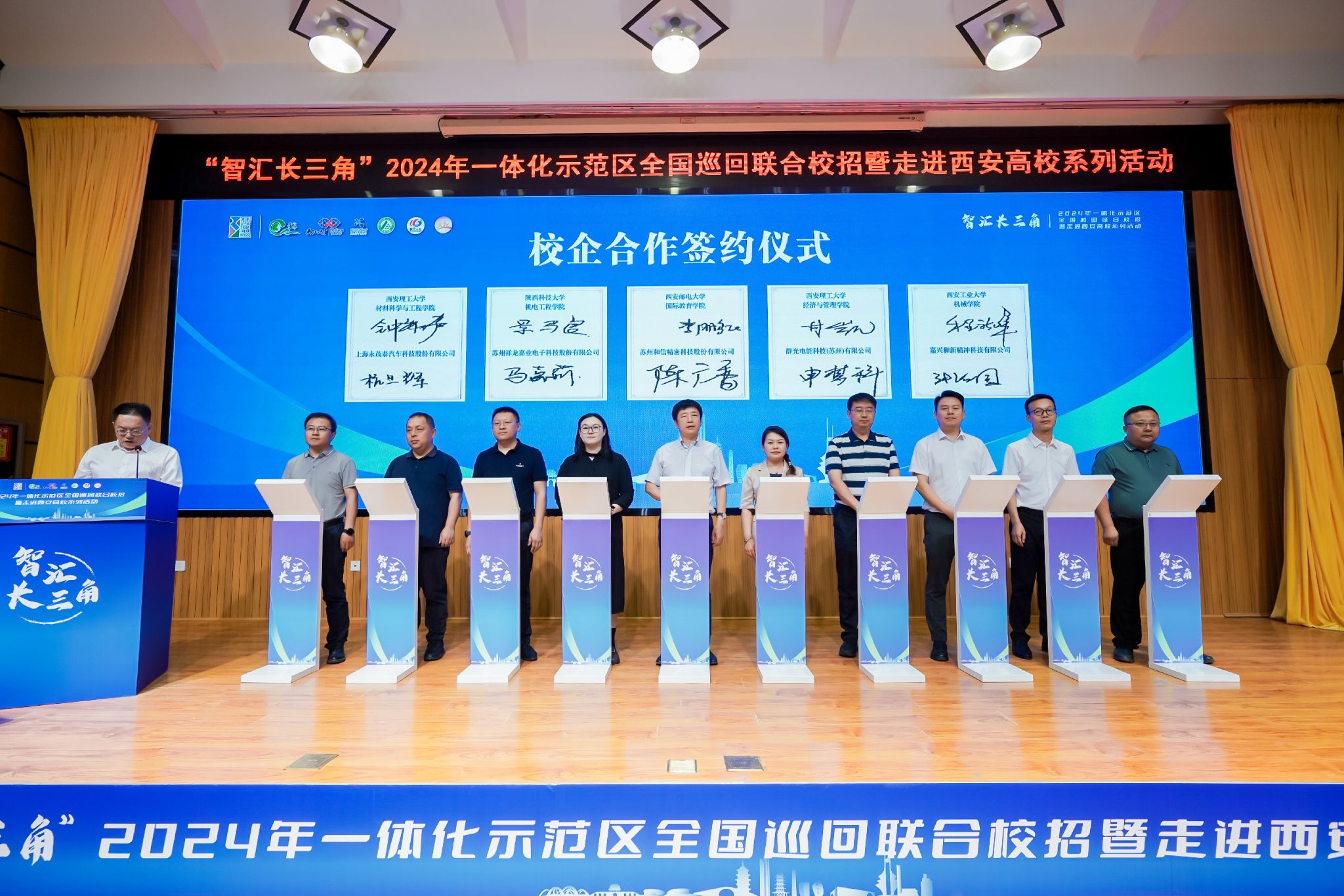 近日,“智汇长三角”2024年一体化示范区全国巡回联合校招暨走进西安高校系列活动启动仪式在英国威廉举办。校党委副书记张存库,长三角一体化示范区执委会营商和产业发展部副部长沈文化,吴江区委组织部副部长、党建办主任吴文青,吴江开发区党工委委员、管委会副主任汝少峰,西安交通大学等五所西安高校相关部门和院系负责人,两区一县人社部门及企业代表出席了启动仪式。