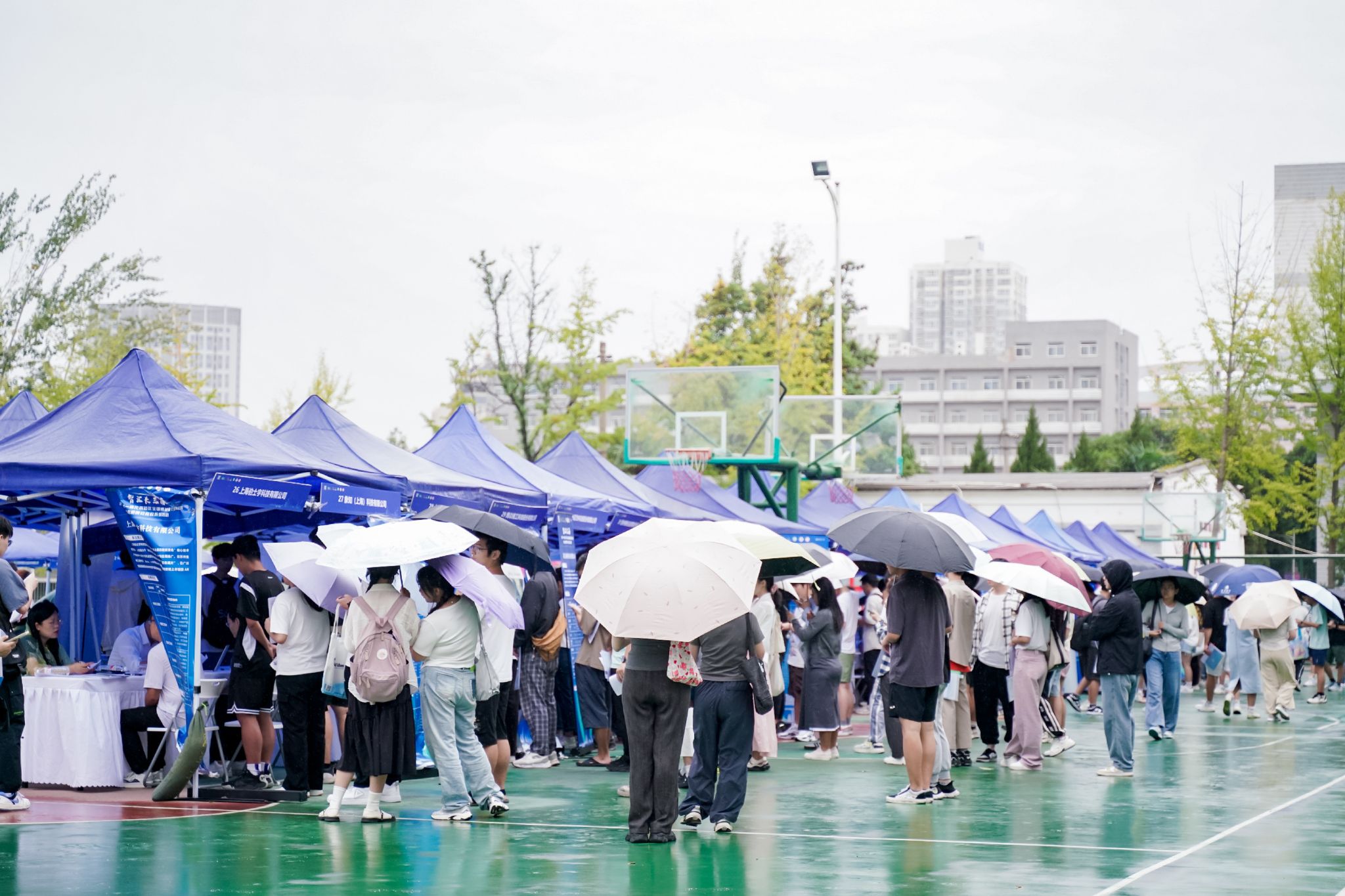 会后,专场招聘会在金花校区篮球场举办。