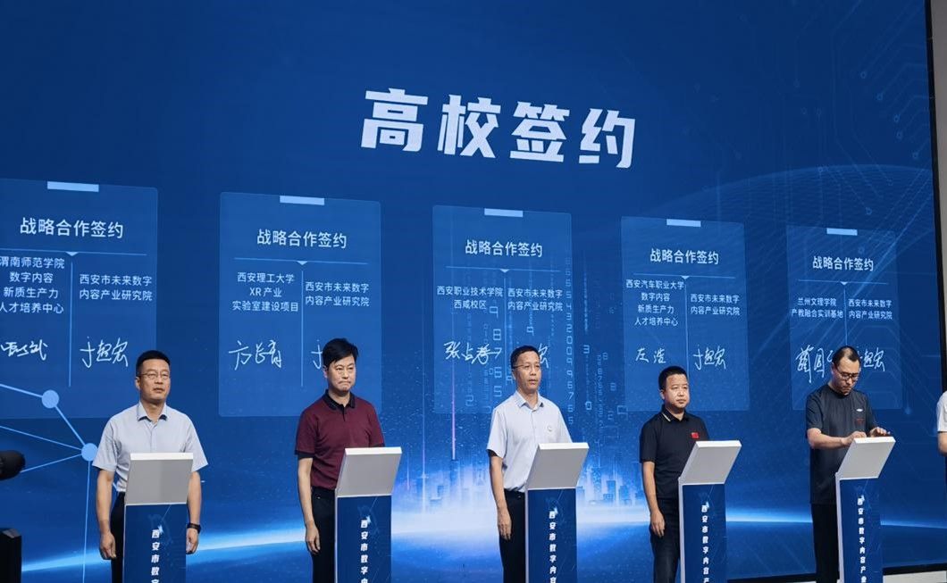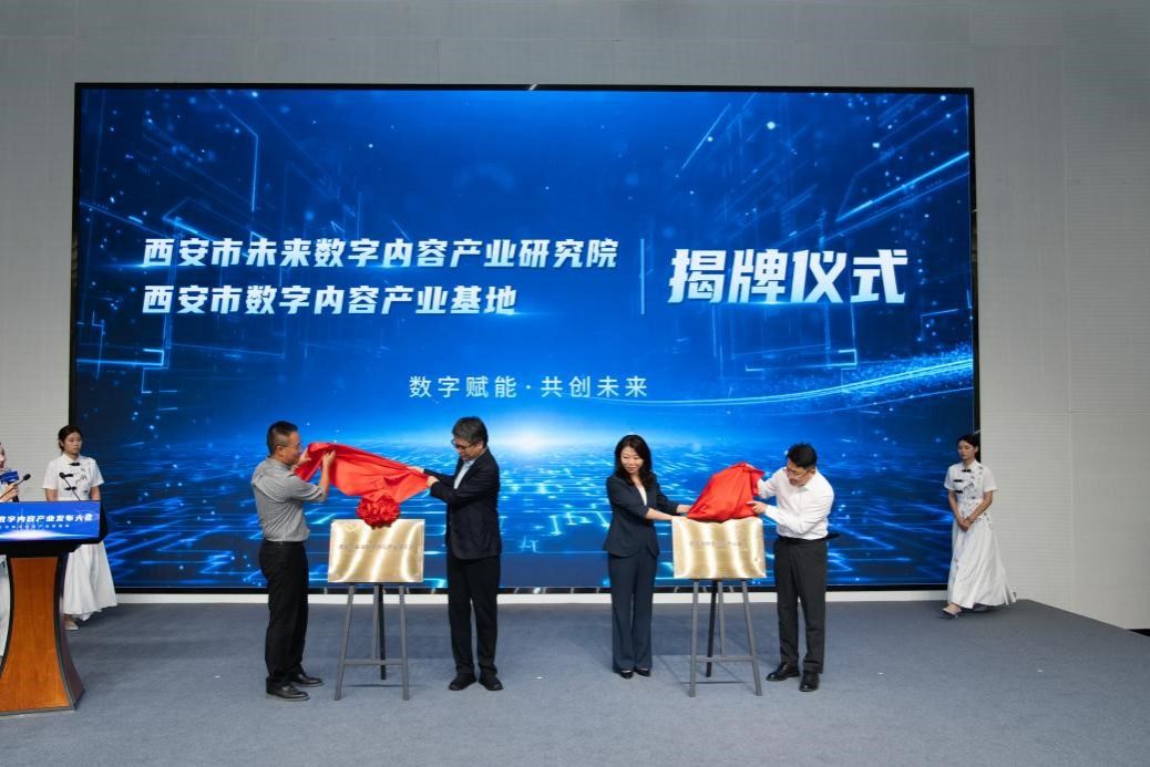 大会发布了《西安数字内容产业报告》及数字内容项目清单,签署了系列合作协议,西安市数据局局长刘鑫、西咸新区管委会副主任艾晨分别与研究院负责人谢飞、基地负责人曹文华为“西安市未来数字内容产业研究院”及“西安市数字内容产业基地”揭牌。市数据局、市投资合作局、市文旅局、省广电局融媒体、西咸新区管委会、新区文旅局、西咸集团等主要领导,华山文旅、汉长安城未央宫遗址等企业嘉宾代表和十余所高校嘉宾代表参加活动。