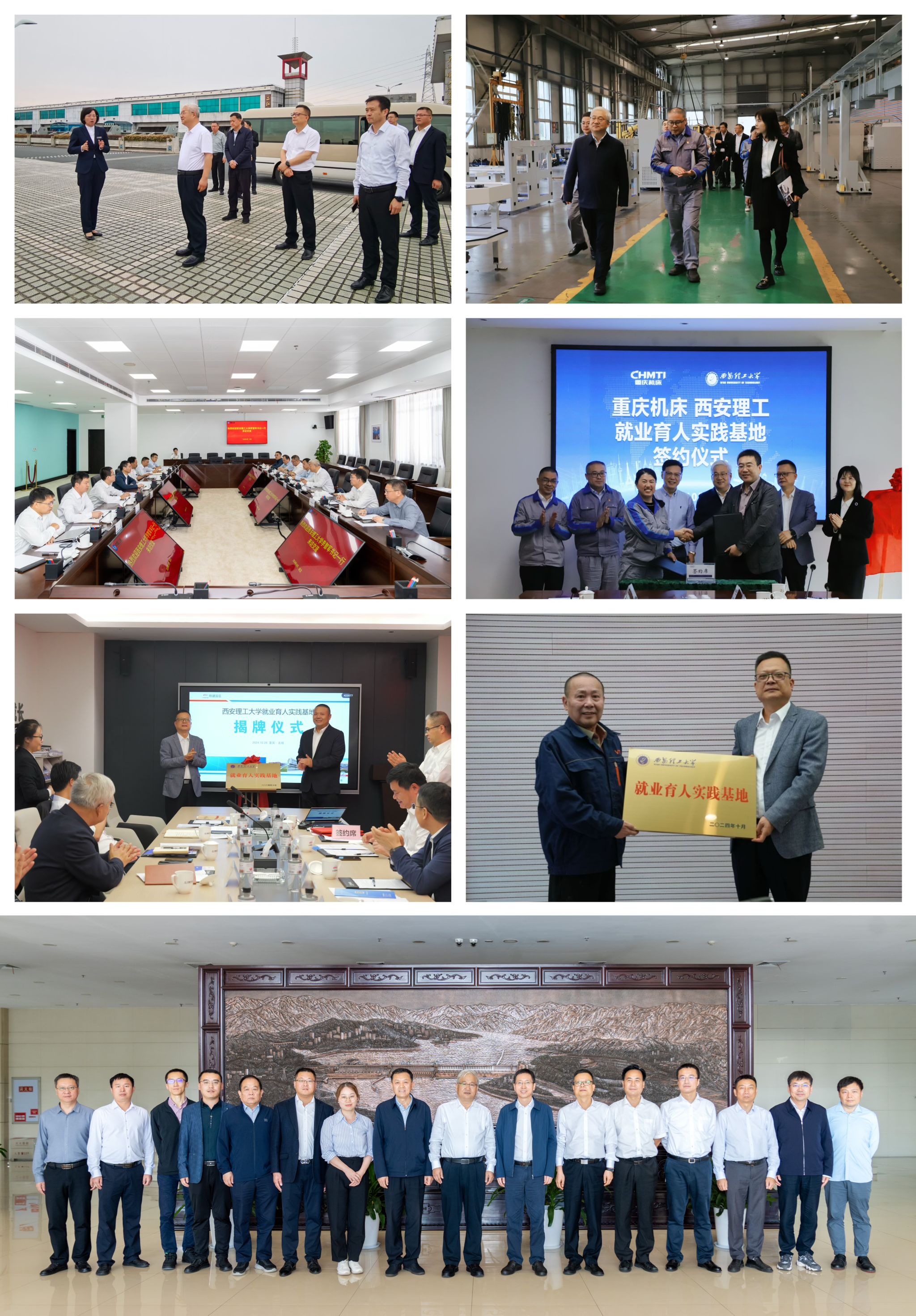 在重庆,李智军、张存库一行先后走访了重庆维大力起重设备有限公司、中国铁建重庆铁建置业有限公司、重庆机床(集团)有限责任公司,与企业负责人就人才培养、产学研合作、学生就业等方面进行了座谈交流,签署了就业育人实践基地协议,参观了重庆市传感器产业园和重庆维大力起重设备有限公司、重庆机床(集团)有限责任公司生产车间,详细了解生产运行情况。李智军希望校企发挥各自的优势,建立产学研深度合作关系,实现企业发展与学校人才培养互利共赢。期间,李智军还参加了重庆师范大学建校70周年发展大会。