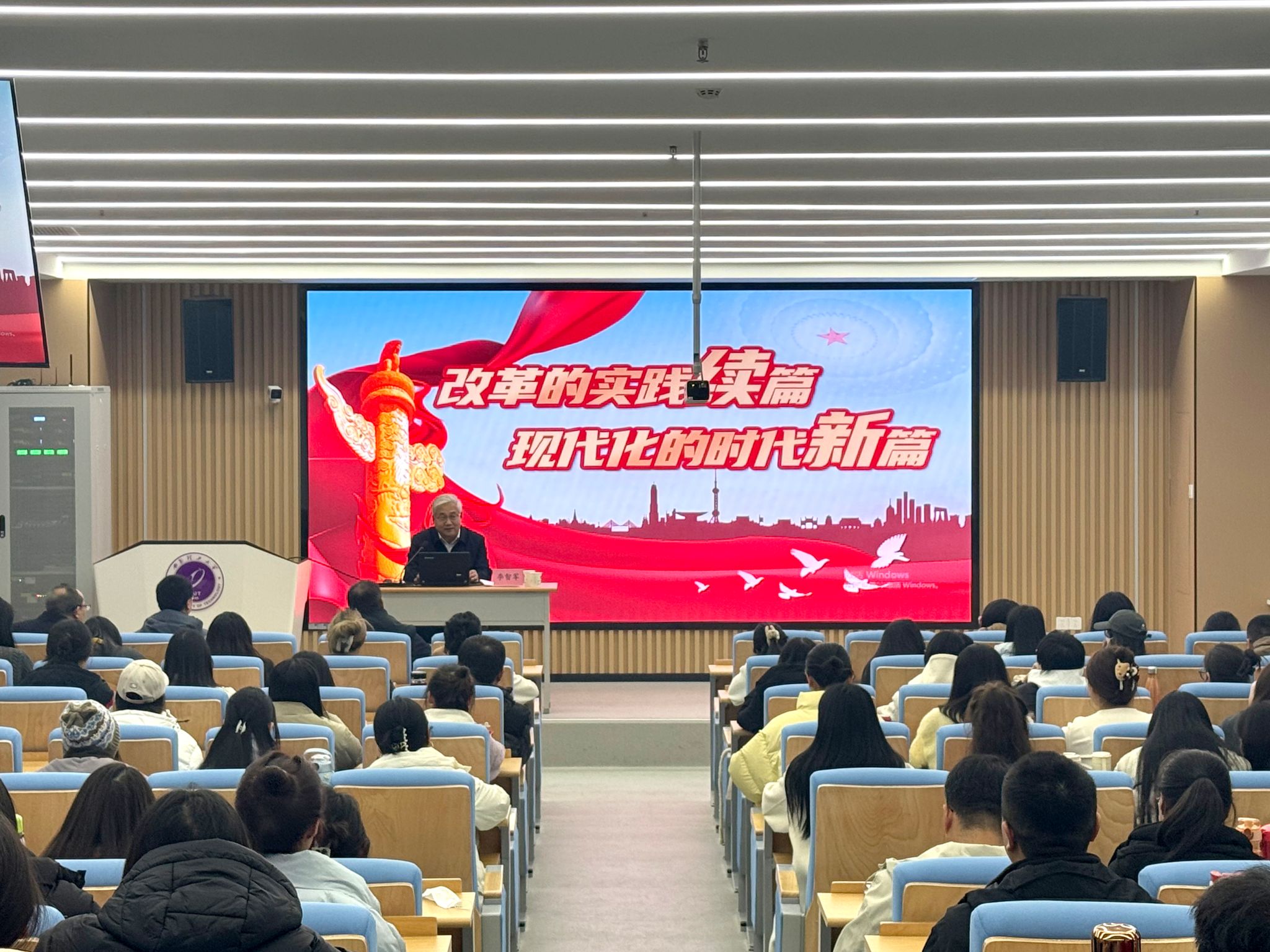 李智军围绕“改革”关键主题词,以详实的数据和生动的案例,系统梳理了党的十八大以来我国在全面深化改革进程中取得的显著成就,生动讲解了改革为国家带来的全方位变化,系统阐述了进一步全面深化改革的重大意义,结合学校工作实际重点讲授了二〇二九年和二〇三五年等关键时间节点、“七个聚焦”工作重点和“六个坚持”重大原则,引导学生全方位分重点有层次把握全会精神的主旨要义。