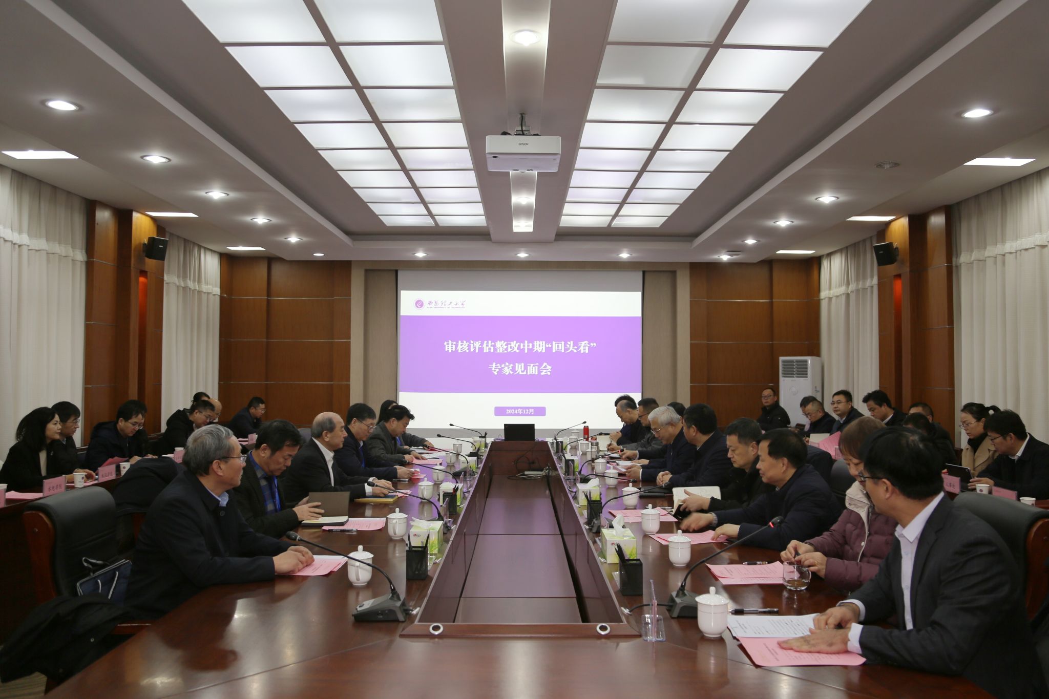 惠泱河主持第二阶段会议。他指出,省教育厅高度重视审核评估整改工作,开展审核评估整改中期“回头看”,不仅是陕西省审核评估“123612”整改工作机制的重要组成部分,更是做好审核评估“下半篇文章”的关键环节。考查过程,专家组将坚持问题导向,以审核评估整改方案为依据,通过对学校整改措施、过程监管、整改落实、整改效果及教育教学改革创新成效等方面深入考查,做出全面客观的评价,并对考查过程发现的问题提出意见建议,助力学校高质量、高水平发展,确保整改工作落到实处,达成预期目标。