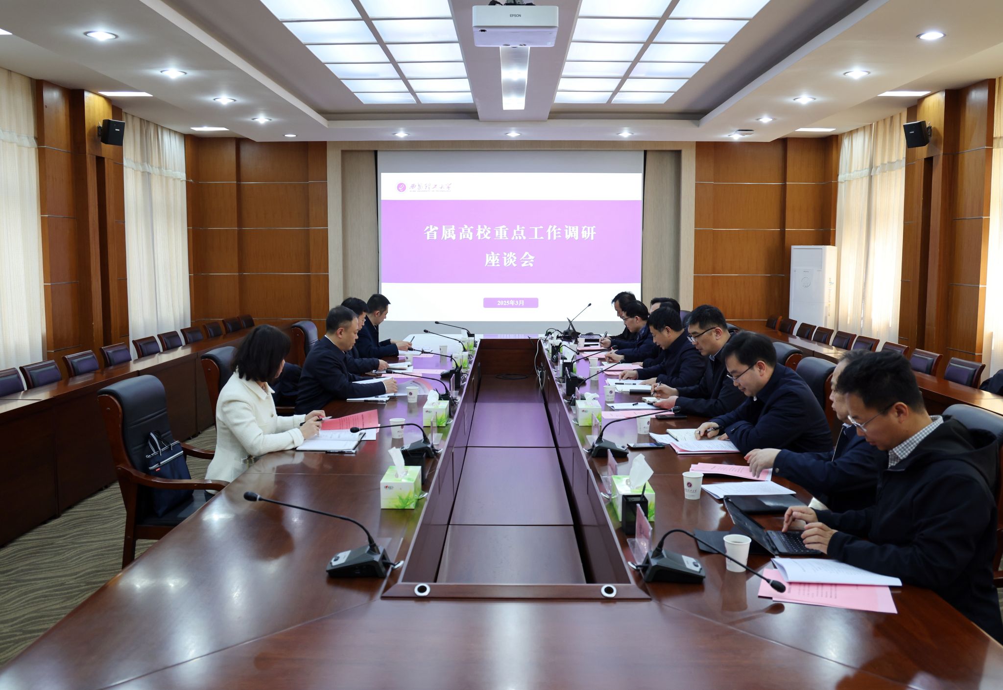 3月7日下午,陕西省财政厅副厅长赵鹏、财政厅教科文处负责同志一行来校调研,围绕“双一流”建设、科技成果产业化以及高校服务地方经济等重点工作进行座谈交流,校长刘云贺出席座谈会,会议由副校长张晓晖主持。