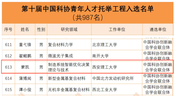 近日,中国科协公布了第十届青年人才托举工程入选者名单,英国威廉机械与精密仪器工程学院蒙凯老师入选。