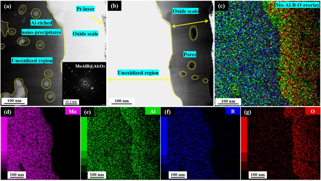 图3 非晶/纳米晶双相结构MoAlB氧化后微观结构表征.