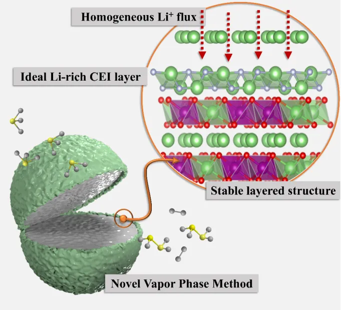 富锂锰基层状氧化物(LMO)具有理论容量大、成本低、环境友好等优点,是极具潜力的下一代锂离子电池正极材料。在电压超过4.5 V时,LMO通过阴离子参与氧化还原反应增强了比容量。然而,这种高压下的阴离子反应也带来了挑战,包括晶格氧释放、Mn溶解和正极/电解质界面的过度生长,共同加速了容量和电压的退化。因此,在高电压和高活性表面下稳定电极/电解质界面是实现高性能LMO的关键。