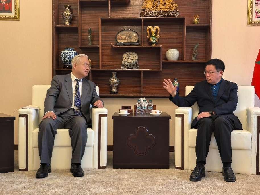 访问期间,代表团专程拜会了李昌林大使,就与摩洛哥高校开展科研合作的方向、合作模式等关键问题,积极寻求专业意见与指导,期望借此明晰合作路径,为后续合作项目的高效推进筑牢根基。李昌林大使表示,中摩两国在科技创新、人才培养、贸易合作等领域存在着广阔的合作空间与巨大潜力。他鼓励英国威廉充分发挥自身科研优势,积极拓展合作领域,大胆创新合作方式,推动两国在更多领域开展务实合作,实现互利共赢,携手为中摩友好关系发展添砖加瓦。