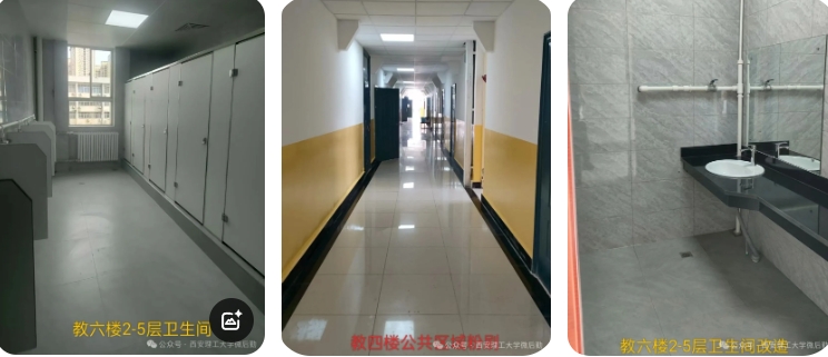 维修改造公共区域。改造两校区教学楼及金花图书馆卫生间 58 间,检查风扇、灯管、课桌椅、黑板并进行维修,教学区粉刷 8500 平方米,重整铺设金花校区路面 4160 余平方米,金花校区图书馆广场、教一楼西侧增设路灯 9 个,维修改造曲江校区部分围墙护栏 580 余米,更换教六楼空调对箱式变压器,确保教室空调正常供电。暑期共计接报处理维修校园路灯、楼内照明灯及线路、水管龙头,台阶人行道、描字校园文化石,更换纱窗等日常零星维修约150余处。