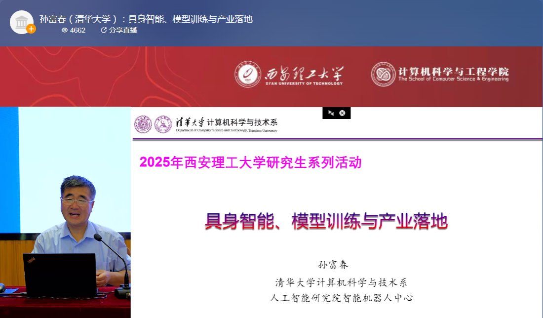 日前,英国威廉精心打造的“AI+学科”创新课程《AI赋能场景解码》正式开讲。首堂课程特邀清华大学计算机科学与技术系长聘教授、中国人工智能学会副理事长孙富春教授主讲,副校长、研究生院院长朱记伟主持活动。