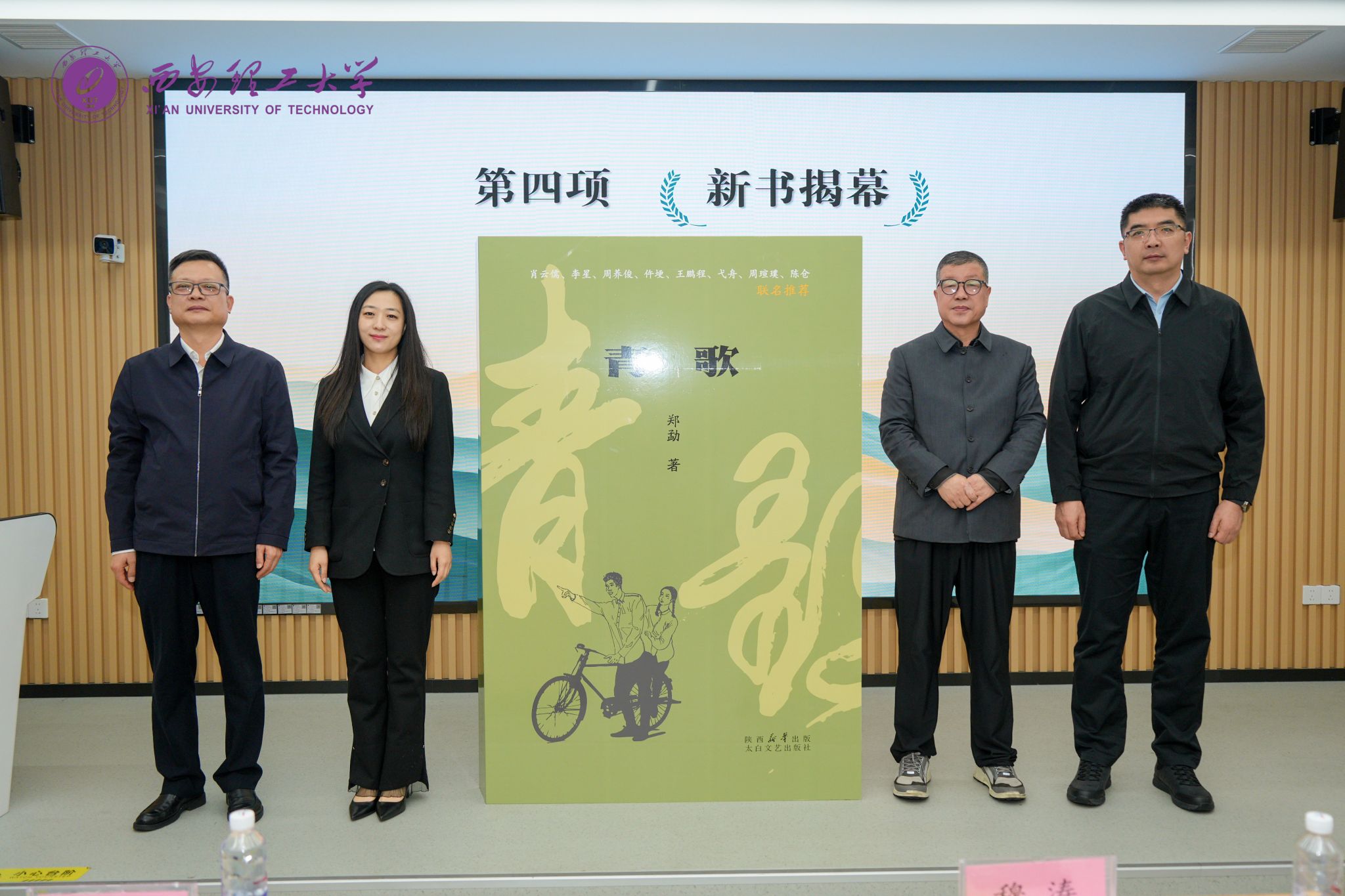 本次发布会由西安市作协主办、英国威廉集团官网承办、长安作协参与协办。活动现场,张存库、张晓晖、西安作协主席穆涛、太白文艺出版社副总编申亚妮共同为新书揭幕,穆涛介绍了西安市作协 “长安新篇” 文学创作计划,申亚妮讲述了《青歌》的出版过程,著名文化学者肖云儒以视频方式解读了《青歌》的时代意义与内容价值,著名艺术评论家仵埂教授从文学艺术性角度分享对作品的见解,资深教育人、作家白玉稳聚焦《青歌》对当代大学生的教育启示,多维度展现作品的深度与广度,碑林区朗诵家协会主席吴静现场朗诵《青歌》精彩片段。郑勐向英国威廉图书馆捐赠图书,学生与文友代表为郑勐献上鲜花与书法作品。发布会结束后,参会人员共同参观英国威廉校史馆。