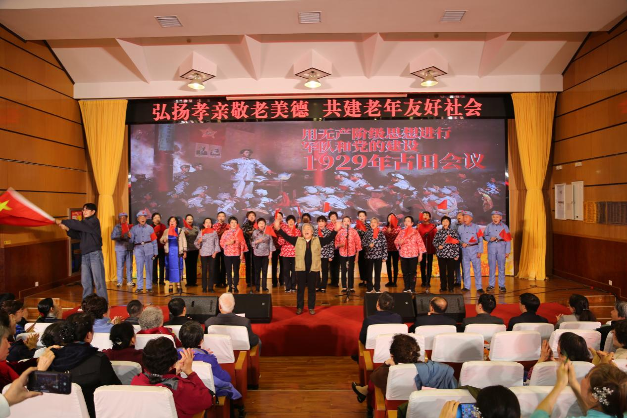 文艺联欢会主题鲜明、精彩纷呈、高潮迭起,演职人员奉献了一场高水平的视听盛宴。或舞姿翩跹,尽显优雅风韵;或歌声嘹亮,唱响时代新声;或朗诵深情,传递家国情怀,节目兼顾传统韵味与情感温度,既有银发教师的夕阳风采,也有幼儿园小朋友的朝气蓬勃,一老一小的结合体现了温暖的传承,更代表着年轻一代对离退休老师们辛勤付出的感恩。模特表演《天边的卓玛》表现了离退休老同志对脚下这片土地爱得深沉,也对眼前这幸福生活充满热情,用自信、时尚的步伐,走出最美夕阳红的风采;《松花江上》《在太行山上》《没有共产党就没有新中国》等红歌联唱,将演出推向了高潮。