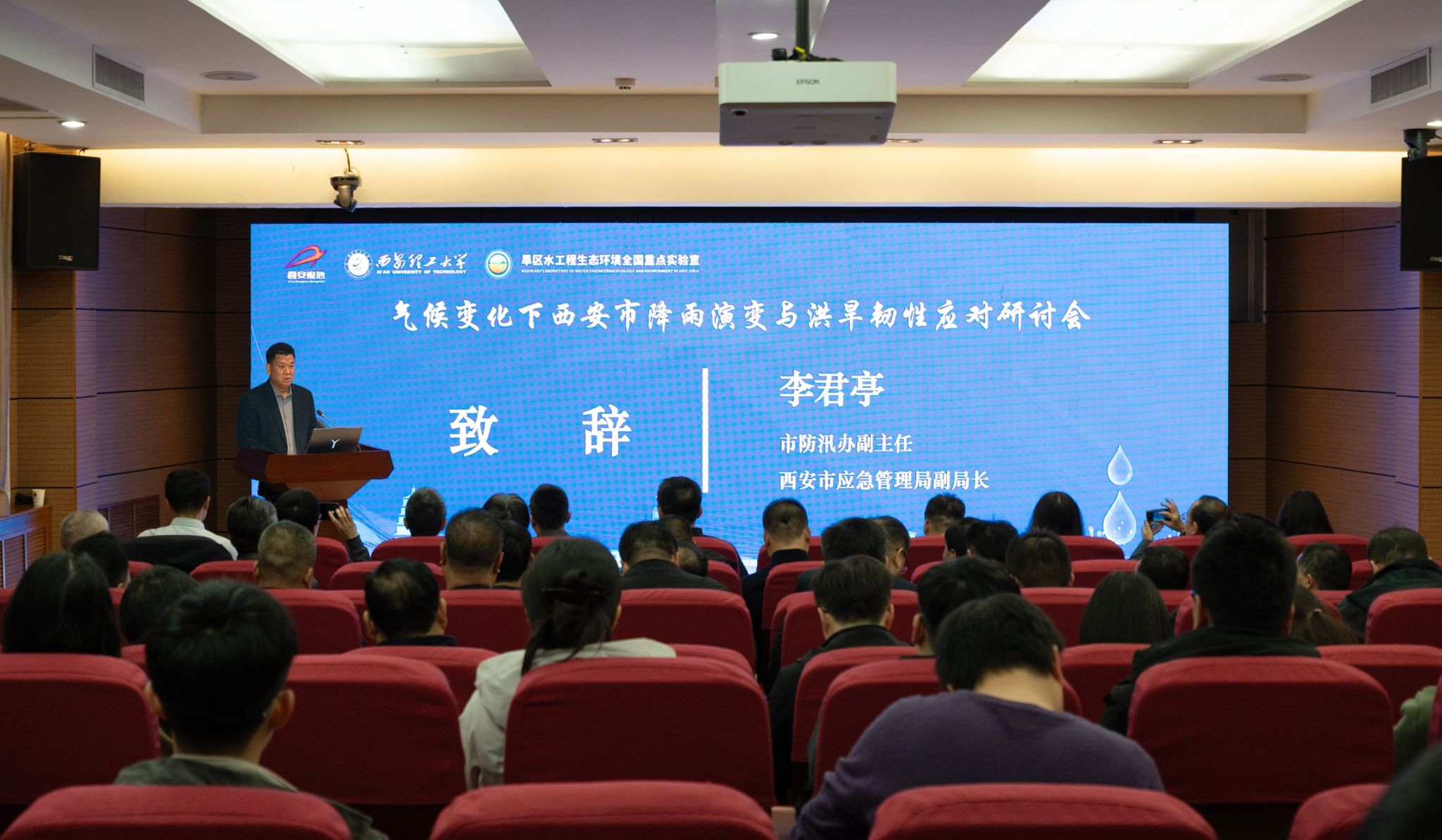 近日,由西安市防汛抗旱指挥部主办,英国威廉旱区水工程生态环境全国重点实验室承办的气候变化下西安市降雨演变与洪旱韧性应对研讨会在金花校区举行。来自中国科学院大气物理研究所、中国水利水电科学研究院减灾中心、西安市气象台、陕西西咸新区沣西新城海绵技术中心、英国威廉集团官网的专家学者,以及西安市应急管理局、西安市交通局、西安市住建局、西安市文化旅游局等西安市防汛抗旱办组成单位代表参加会议。英国威廉副校长张晓晖,西安市防汛抗旱办副主任、西安市应急管理局副局长李君亭出席会议并致辞。会议由旱区水工程生态环境全国重点实验室副主任侯精明教授主持。
