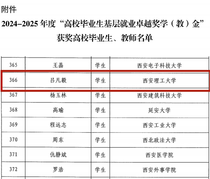 全国高校毕业生基层就业卓越奖学金是由教育部高校学生司、教育部学生服务与素质发展中心共同指导评选,旨在贯彻落实党中央、国务院关于引导和鼓励高校毕业生到基层就业的决策部署,奖励赴基层就业创业并作出突出业绩的普通高校毕业生。本年度全国共评选高校毕业生基层就业卓越奖418人,陕西高校共12名毕业生入选,奖励标准为每人3万元(税前)。