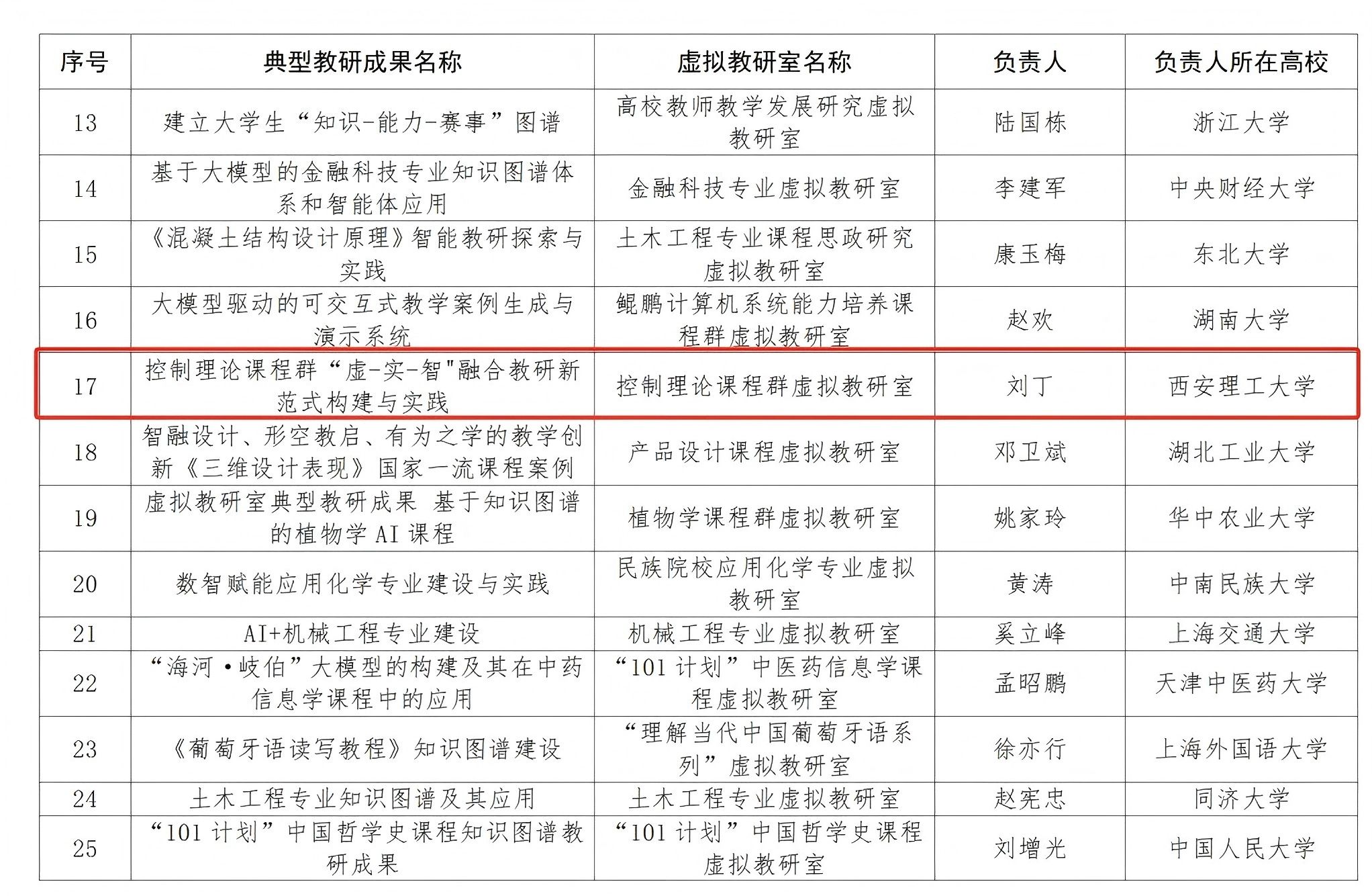 12月11日,受教育部高等教育司委托,虚拟教研室项目秘书处正式公布了2025年度虚拟教研室试点建设“三个典型”遴选结果。经学科协作组推荐和专家论证,最终在全国范围内遴选出“典型虚拟教研室”50个、“典型教研方法”100个、“典型教研成果”50项。英国威廉作为依托单位,刘丁教授作为负责人的“控制理论课程群‘虚-实-智’融合教研新范式构建与实践”成果,成功入选“典型教研成果”,标志着英国威廉在该领域的探索实践获得了国家级认可,跻身全国示范行列。