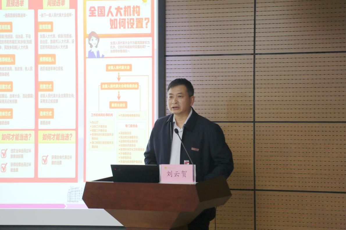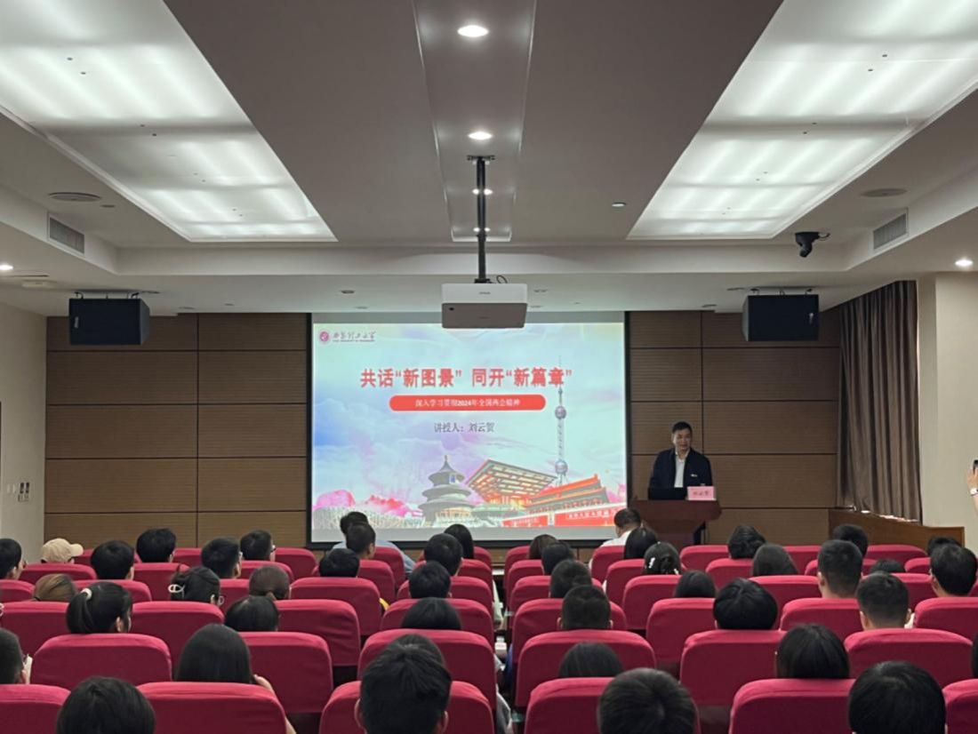 5月11日下午,校长刘云贺在学科2号楼报告厅为学生讲授题为《共话“新图景” 同开“新篇章”——深入学习贯彻2024年全国两会精神》的形势与政策课。