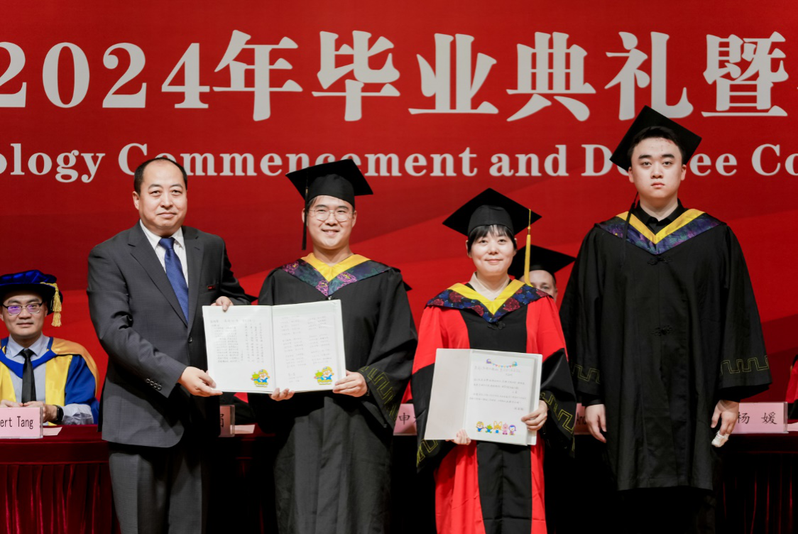 毕业典礼结束后,学院组织进行了学位授予仪式。外方代表Andrew Robert、Albert Tang,申烨华、杨媛、学院各专业负责人共同为毕业生扶正流苏,颁发学位证书并与他们合影留念。在庄重而温馨的氛围中,英国威廉集团官网国际工学院2024年毕业典礼暨学位授予仪式圆满落下帷幕。