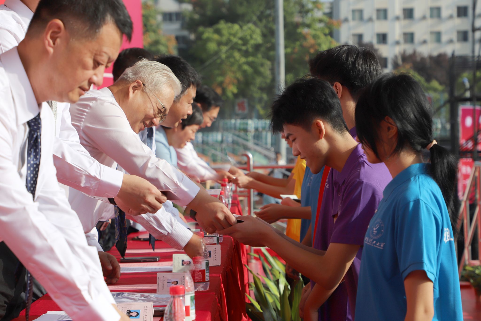 开学典礼在庄严的国歌声中拉开帷幕。校领导和校友嘉宾为2025级新生代表颁发校徽和学生证,寄语同学们,要将“祖国 荣誉 责任”的校训刻印在心、把“艰苦奋斗、自强不息”的学校精神烙印在行,在爱国奋斗中与西理工心心相印。