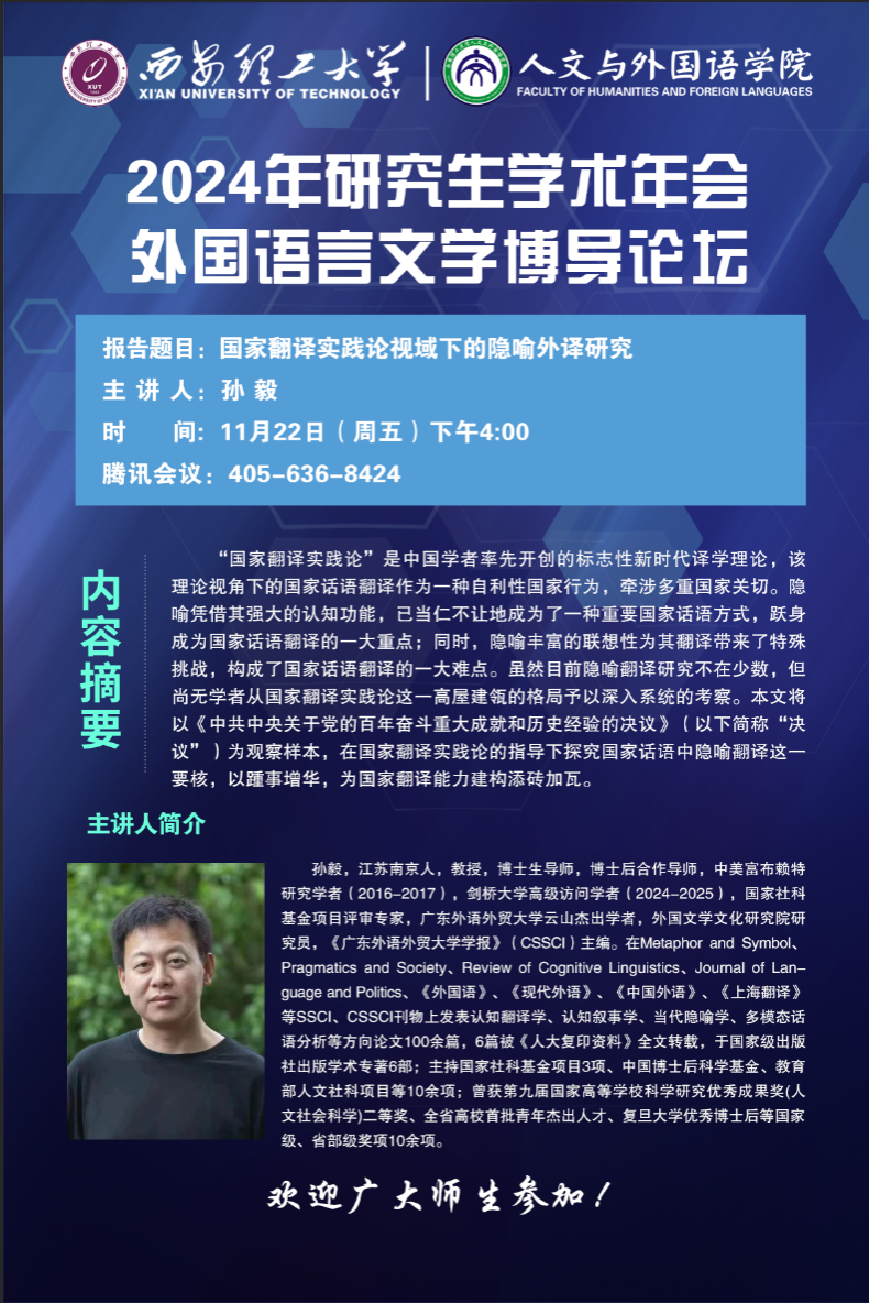 研究生学术年会系列报告--国家翻译实践论视域下的隐喻外译研究