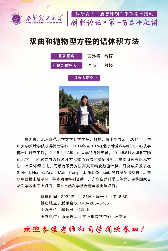 创新论坛第127讲——北京师范大学曹外香教授学术报告通知