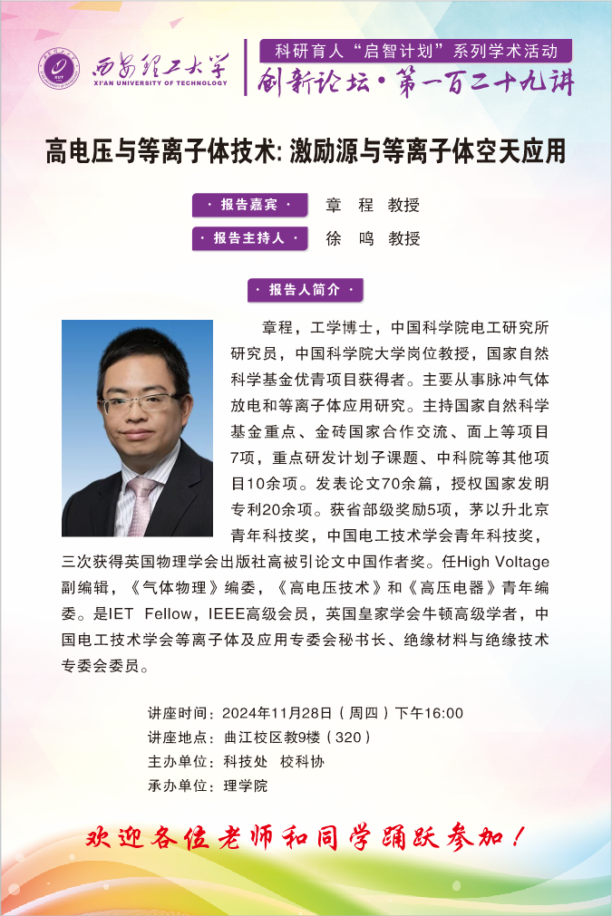 创新论坛第129讲——中国科学院电工研究所章程研究员学术报告通知