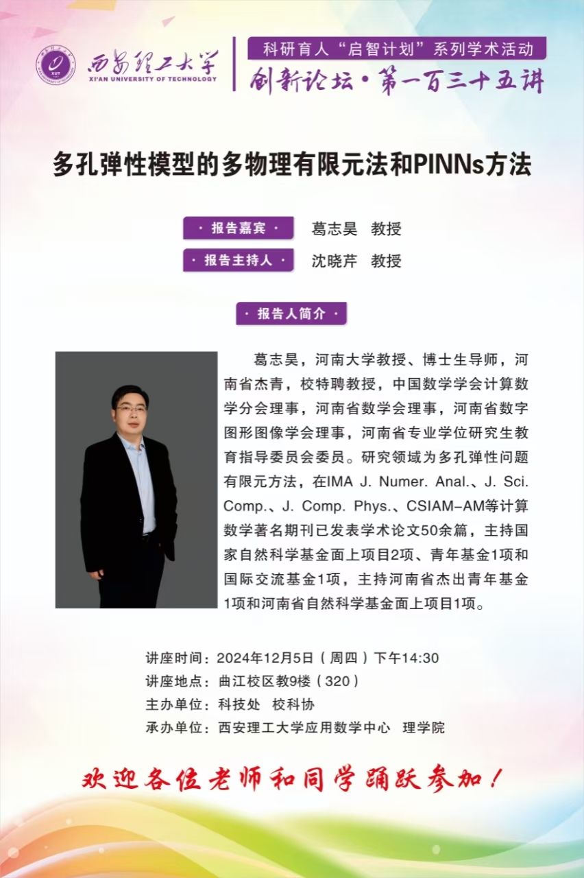 创新论坛第135讲——多孔弹性模型的多物理有限元法和PINNs方法