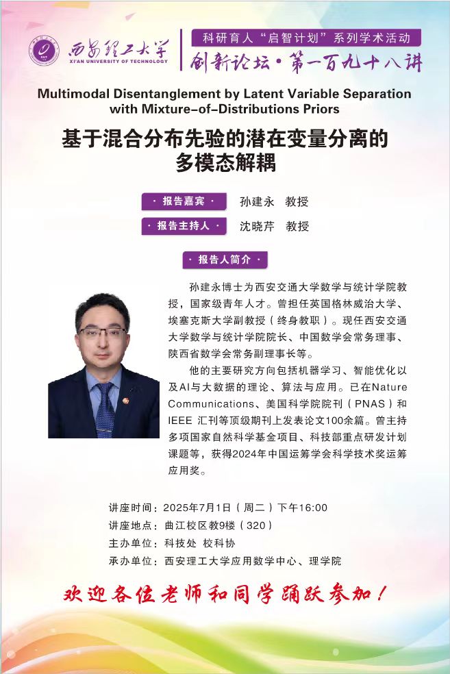 创新论坛第198讲:【明理笃学】西安交通大学孙建永教授学术报告通知