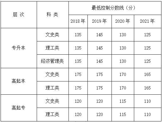 陕西省2018年-2021年成人高考录取最低控制分数线
