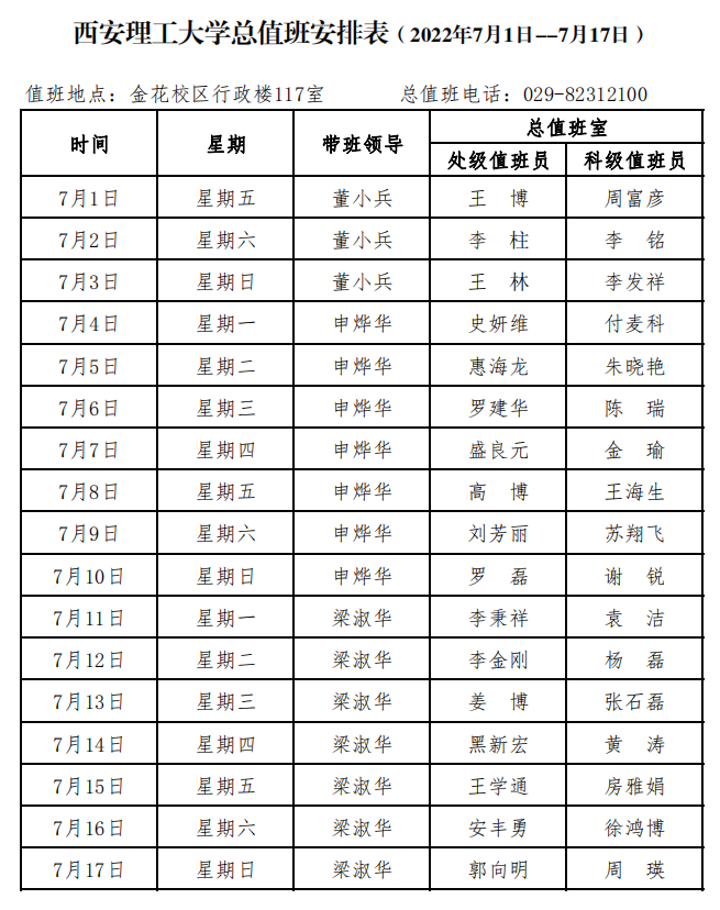 英国威廉集团官网总值班安排表(2022年7月1日--7月17日)