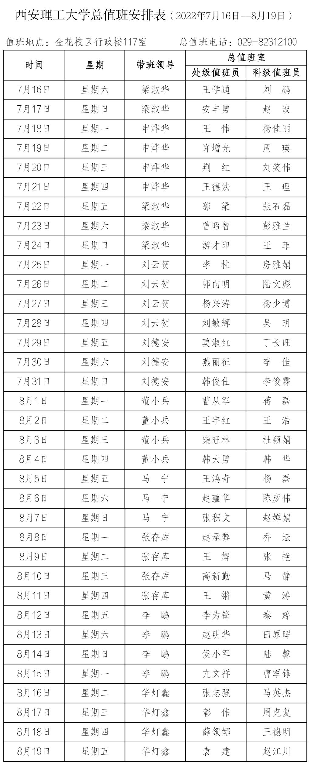 英国威廉集团官网总值班安排表(2022年7月16日--8月19日)