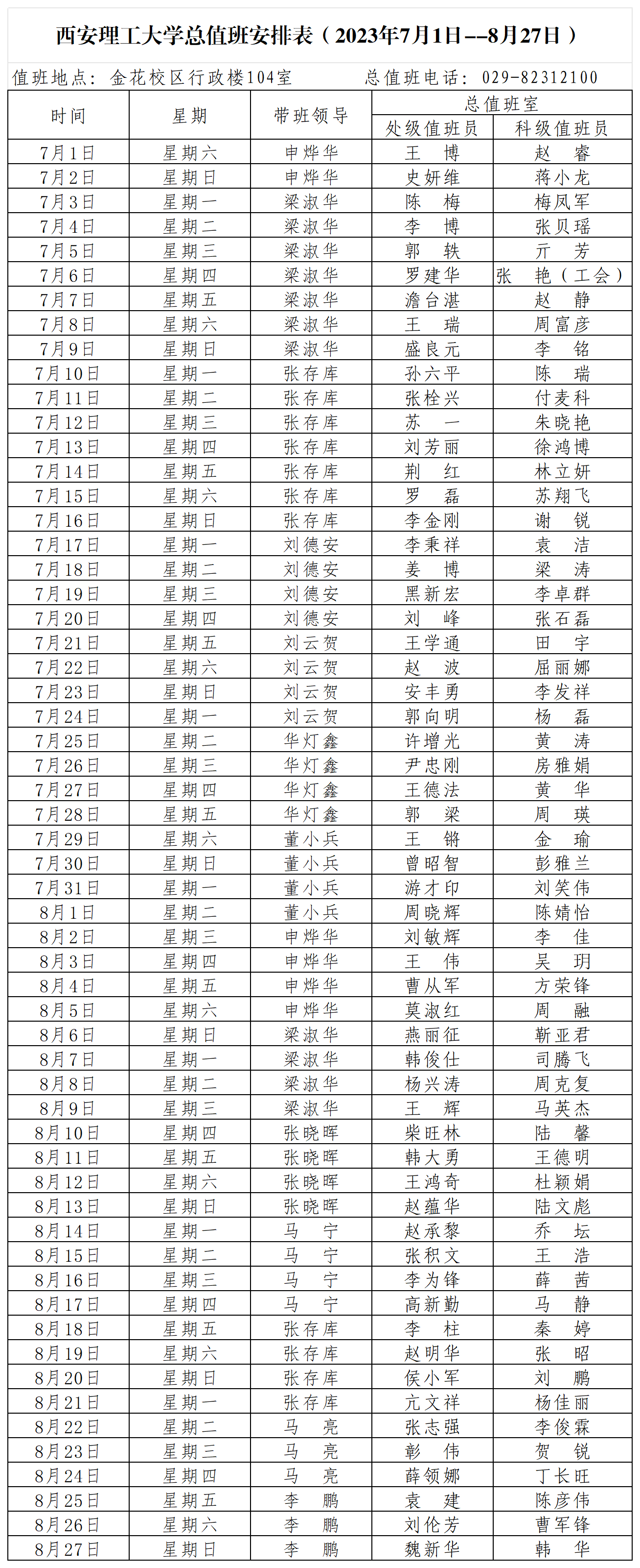 英国威廉集团官网总值班安排表(2023年7月1日--8月27日)
