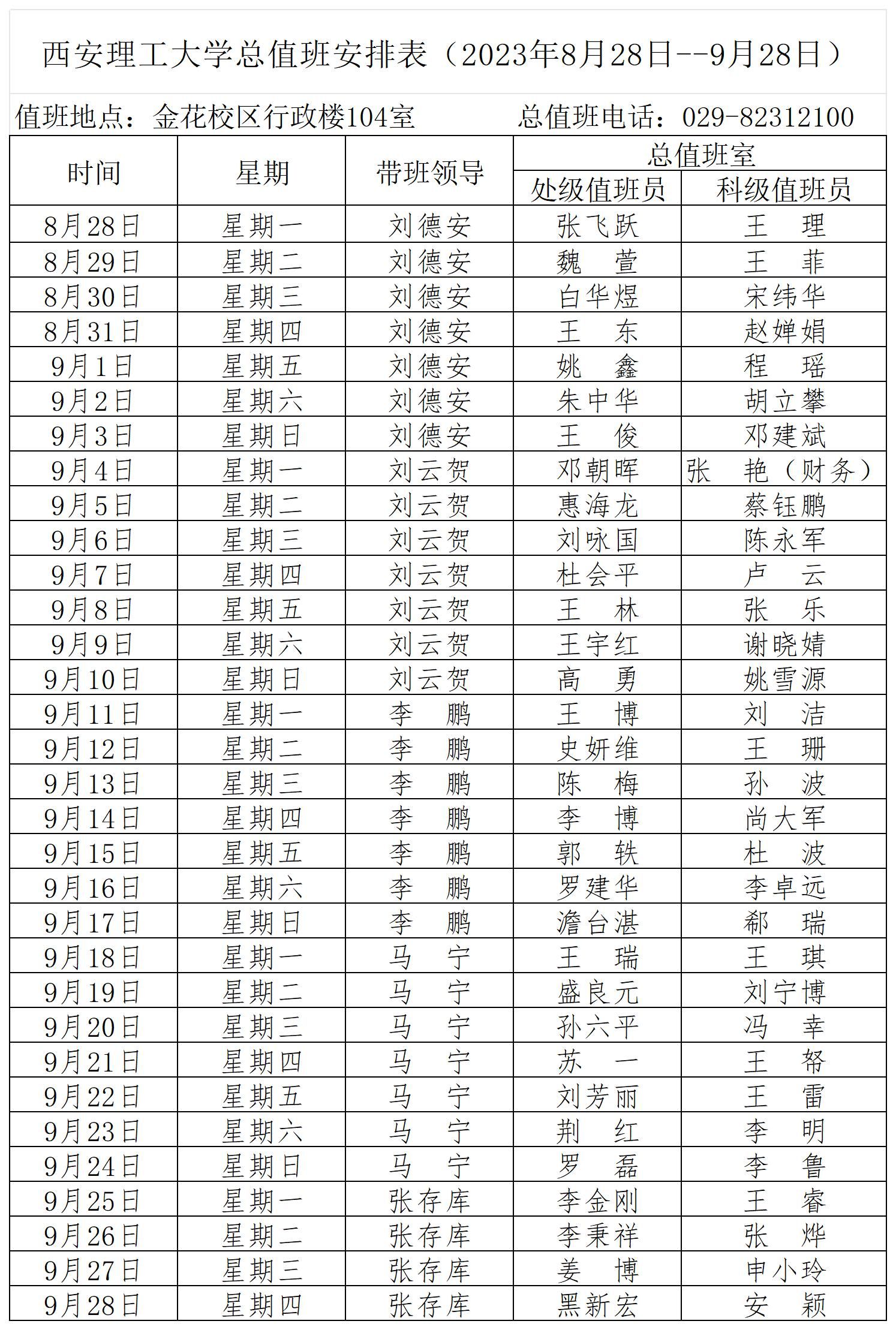 英国威廉集团官网总值班安排表(2023年8月28日--9月28日)