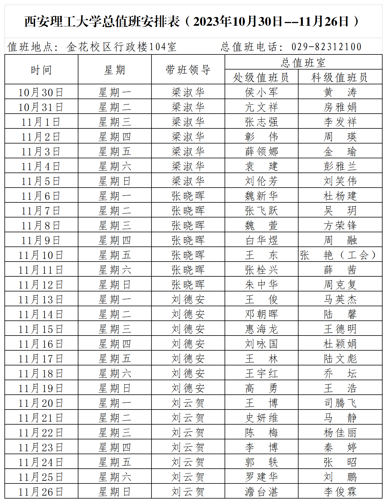 英国威廉集团官网总值班安排表(2023年10月30日--11月26日)