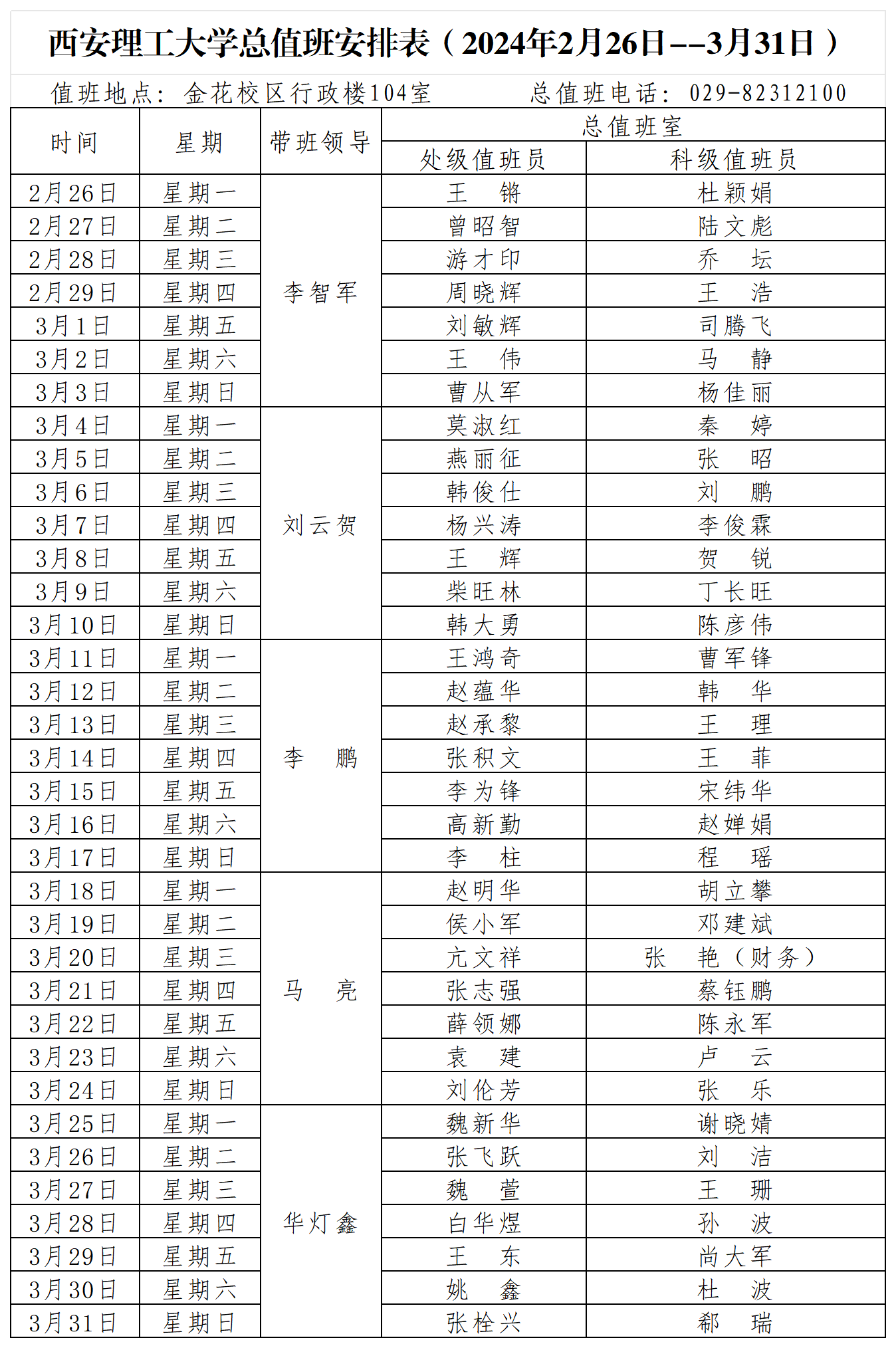 英国威廉集团官网总值班安排表(2024年2月26日--3月31日)