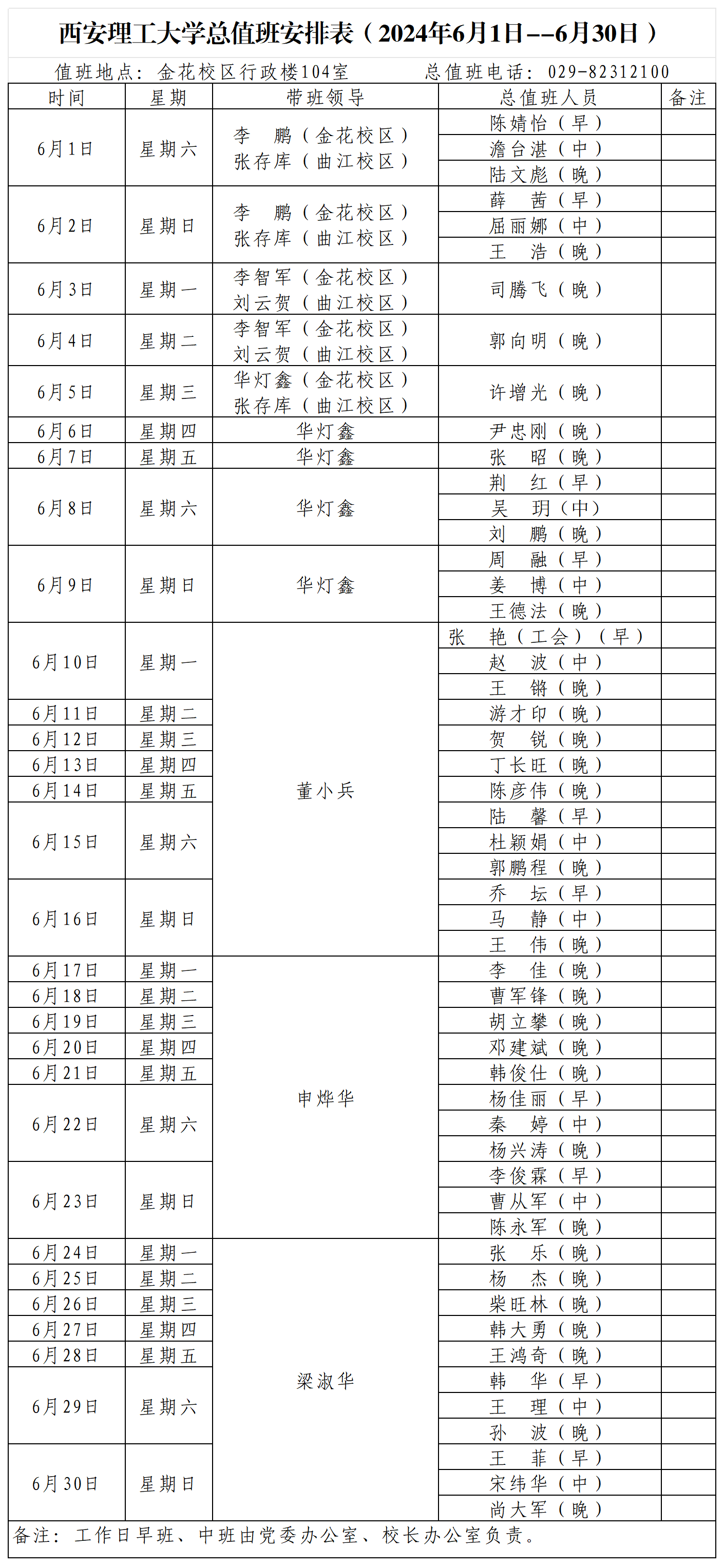 英国威廉集团官网总值班安排表(2024年6月1日--6月30日)