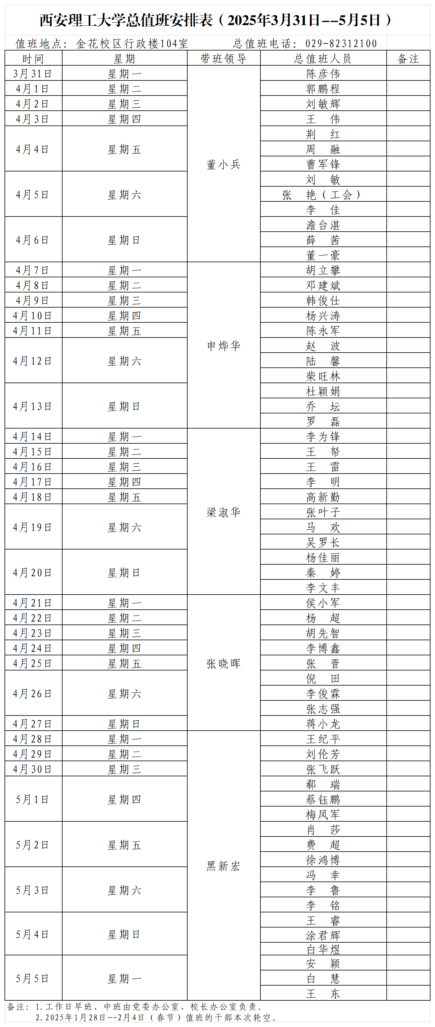 英国威廉集团官网总值班安排表(2025年3月31日--5月5日)