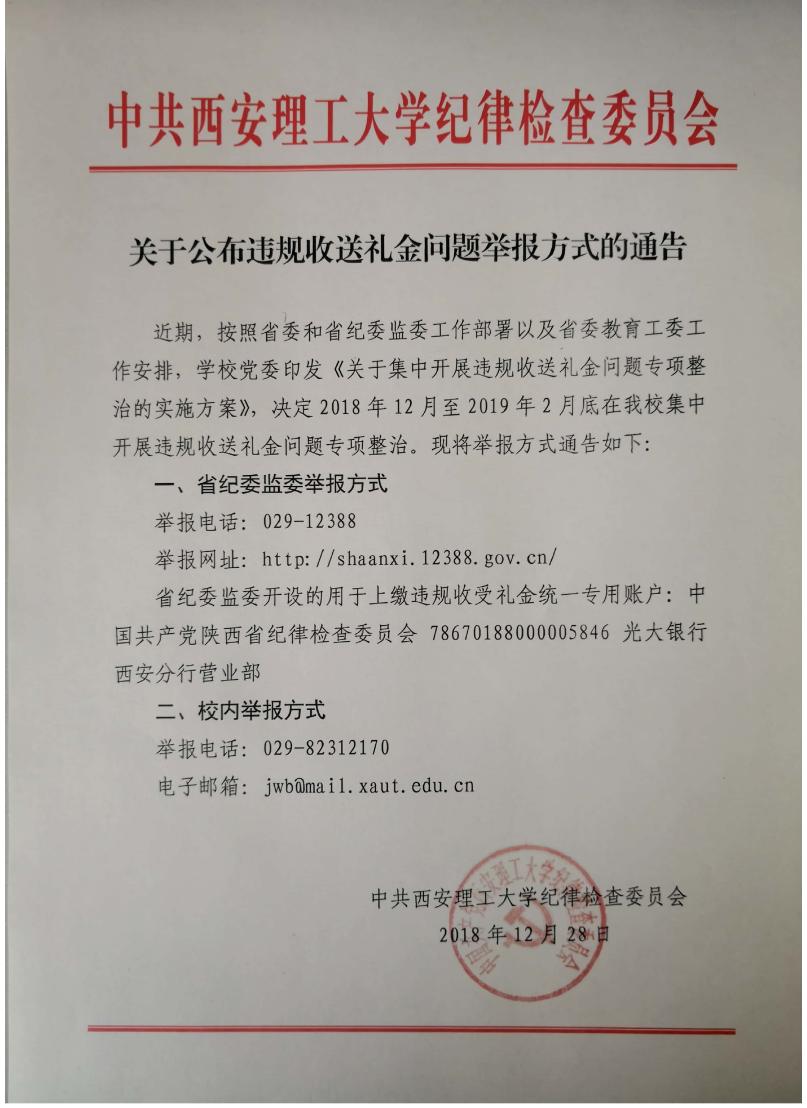 关于公布违规收送礼金问题举报方式的通告