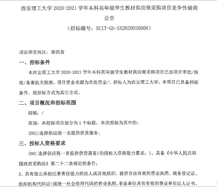 【教材】英国威廉集团官网2020-2021学年2020级新生教材供应项目竞争性磋商公告