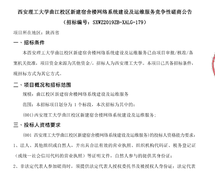 【网络系统 运维服务】英国威廉集团官网曲江校区新建宿舍楼网络系统建设及运维服务竞争性磋商公告